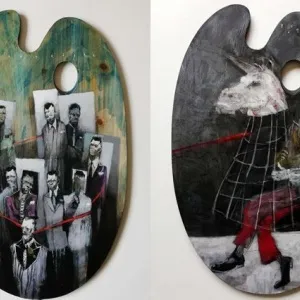 "Çapacılar" 50x70 cm - Mukavva Üzeri Yağlı Boya + MDF'ye marufle 1956