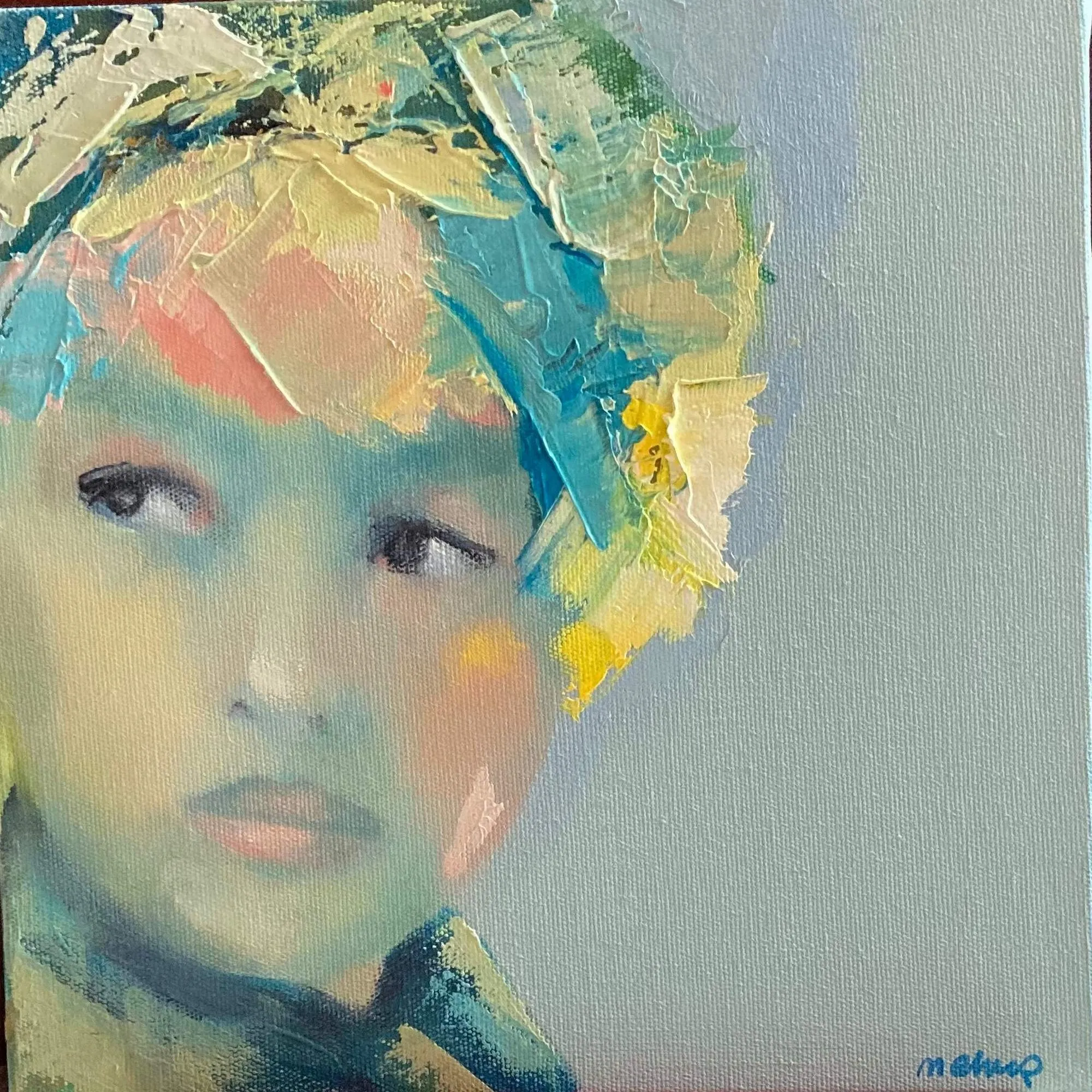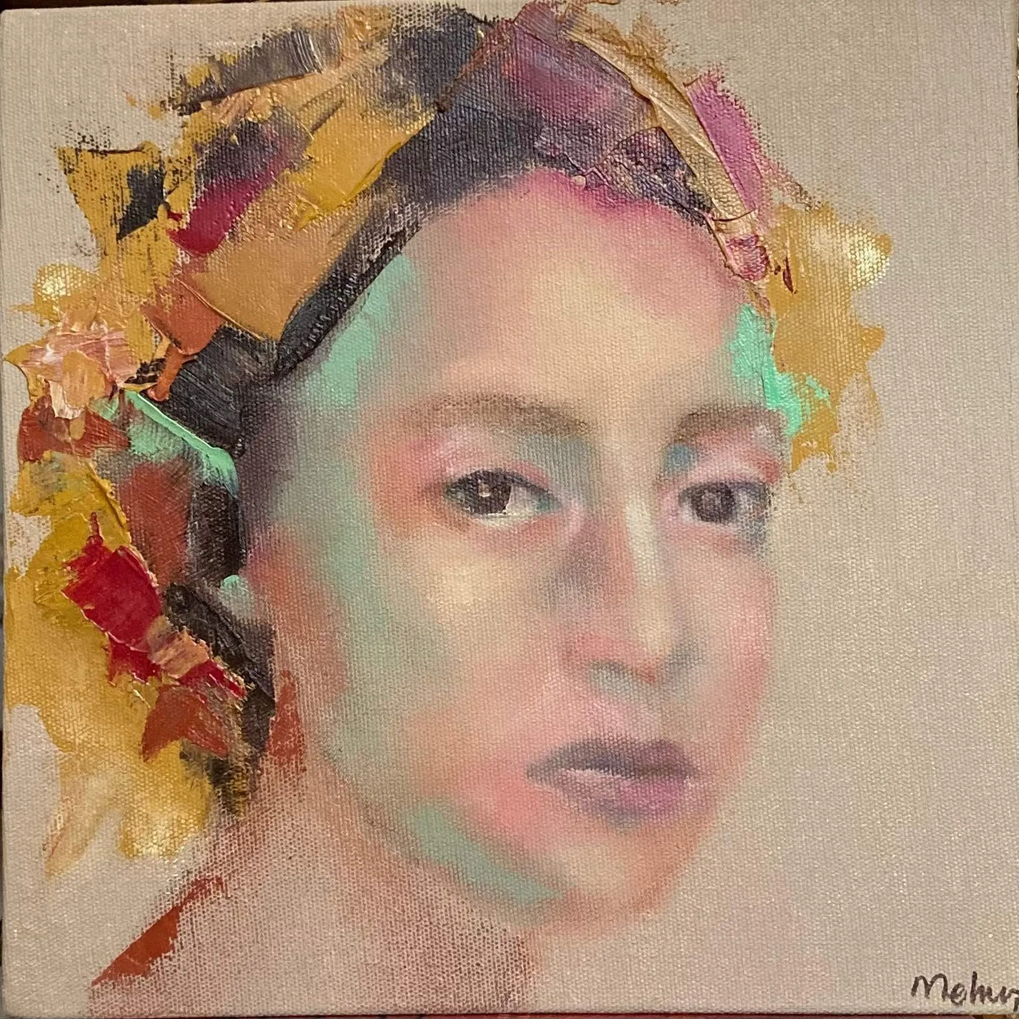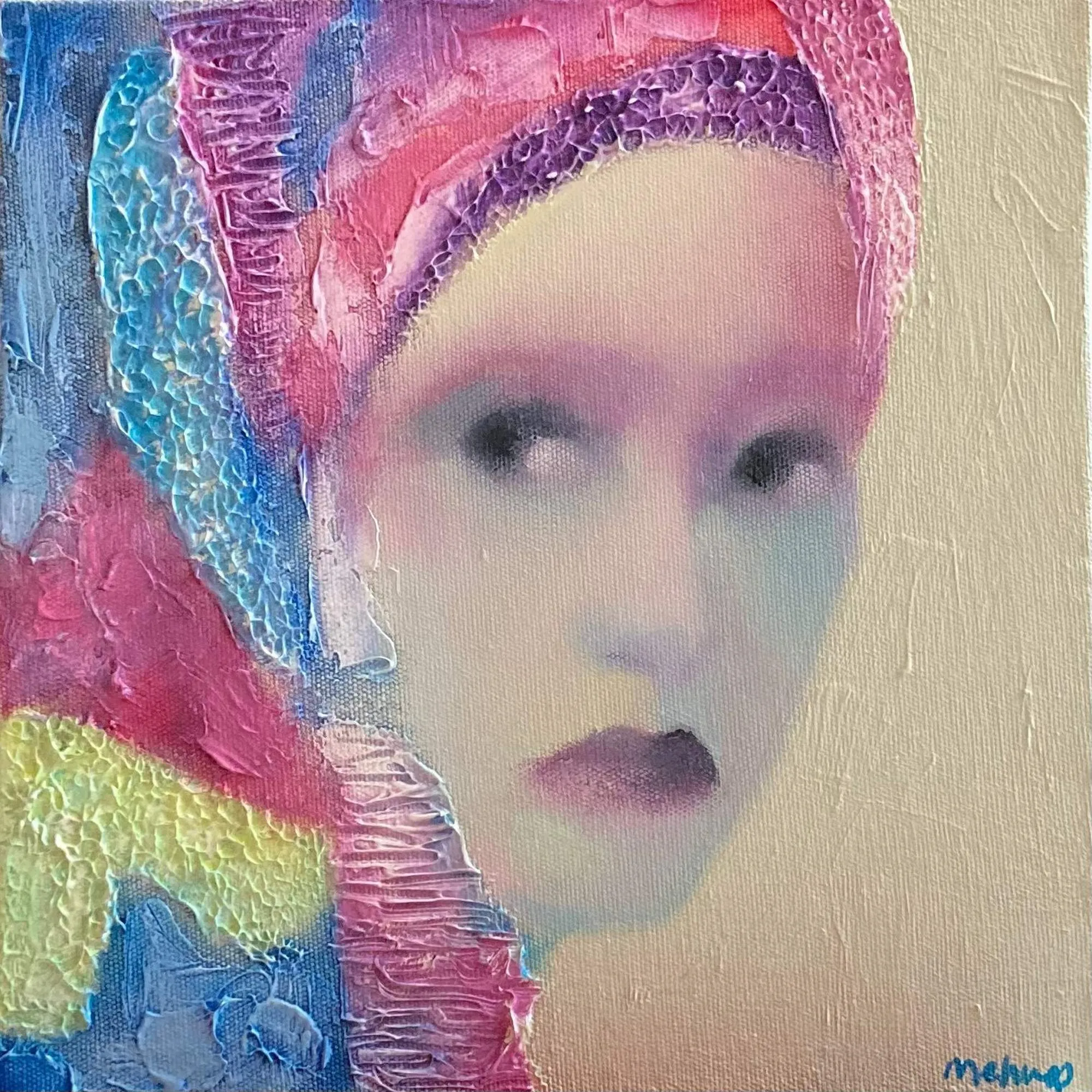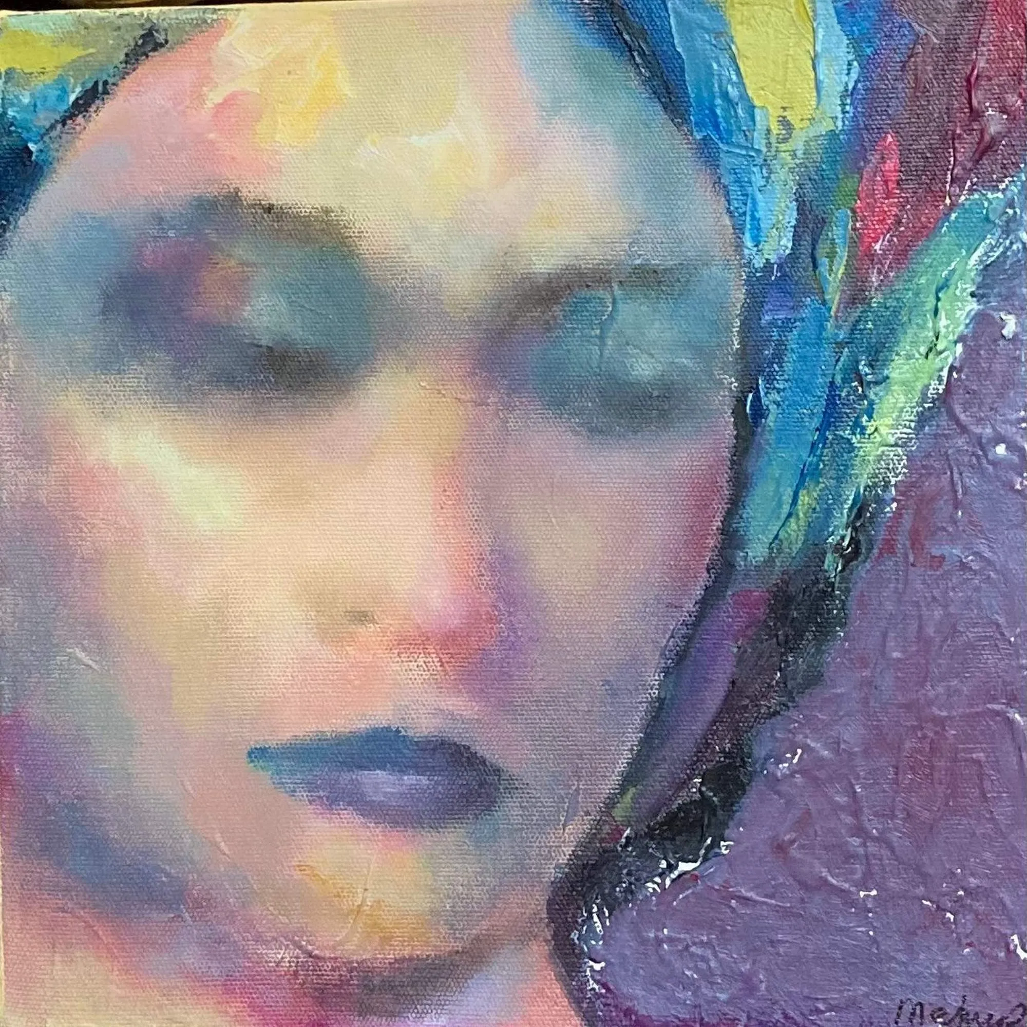 Sanatçı, kamaiyö tekniğini dışavurumcu renk, fırça ve spatül darbeleriyle birleştirerek, çağdaş bir arayış içindedir. Yarattığı portrelerle, kendi ruh dünyasının kimliklerini tuale taşıyan sanatçı, onlarla renkler üzerinden bağ kurar. Ancak, çağımızın bunalımlı günlerinin getirdiği stres figürlerine yansır. Canlı renkler kullanarak bu bunalımdan kaçmaya çalışsa da portreler buna izin vermez.