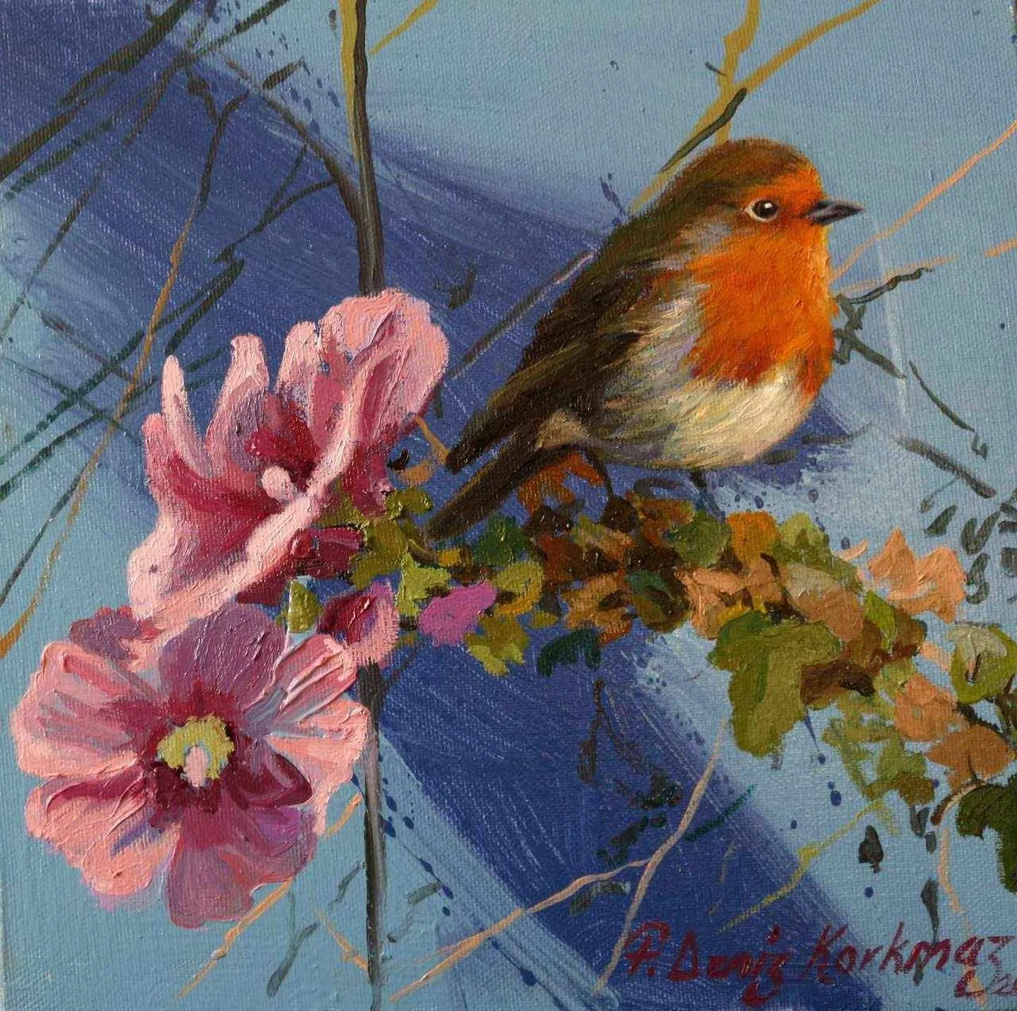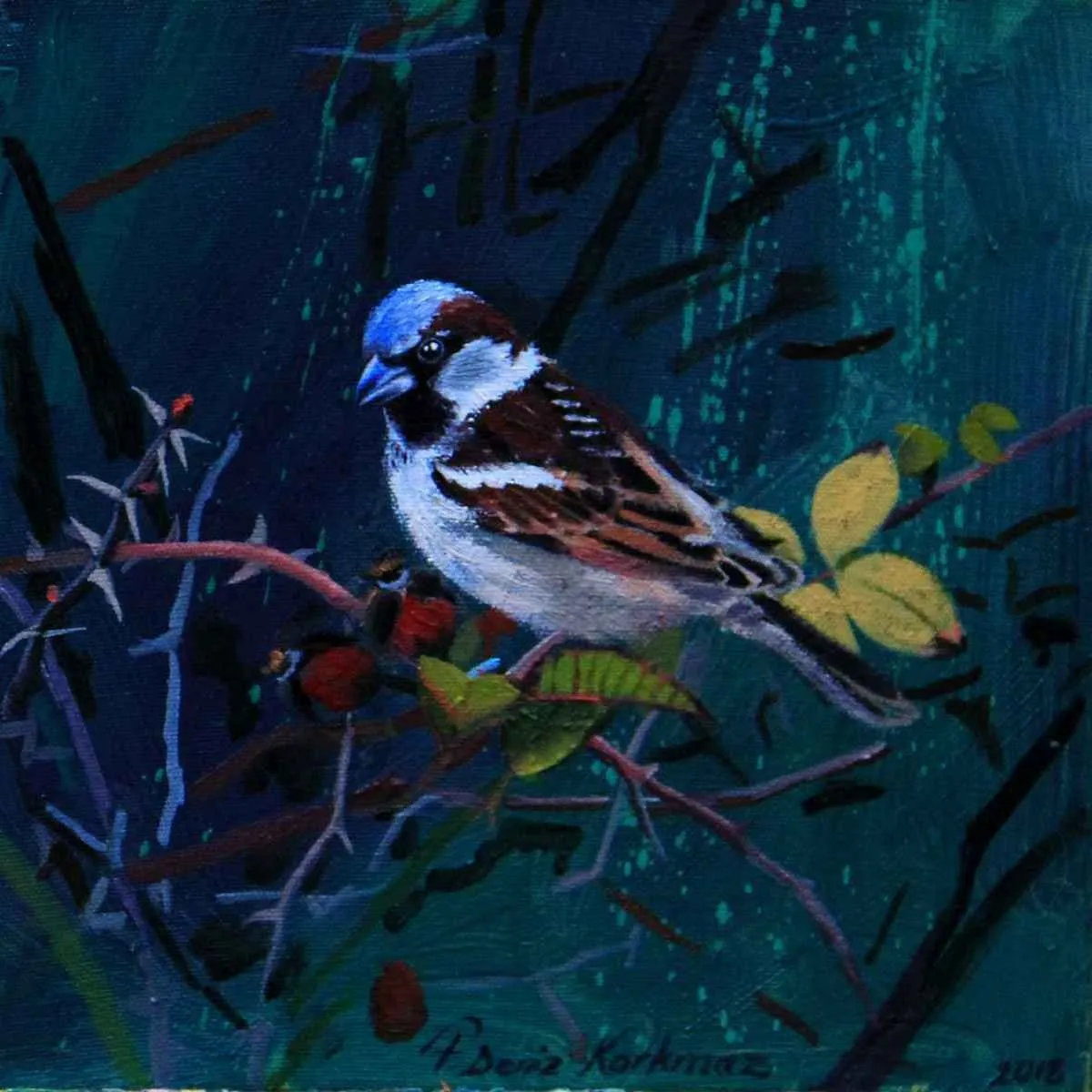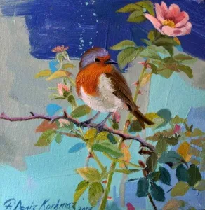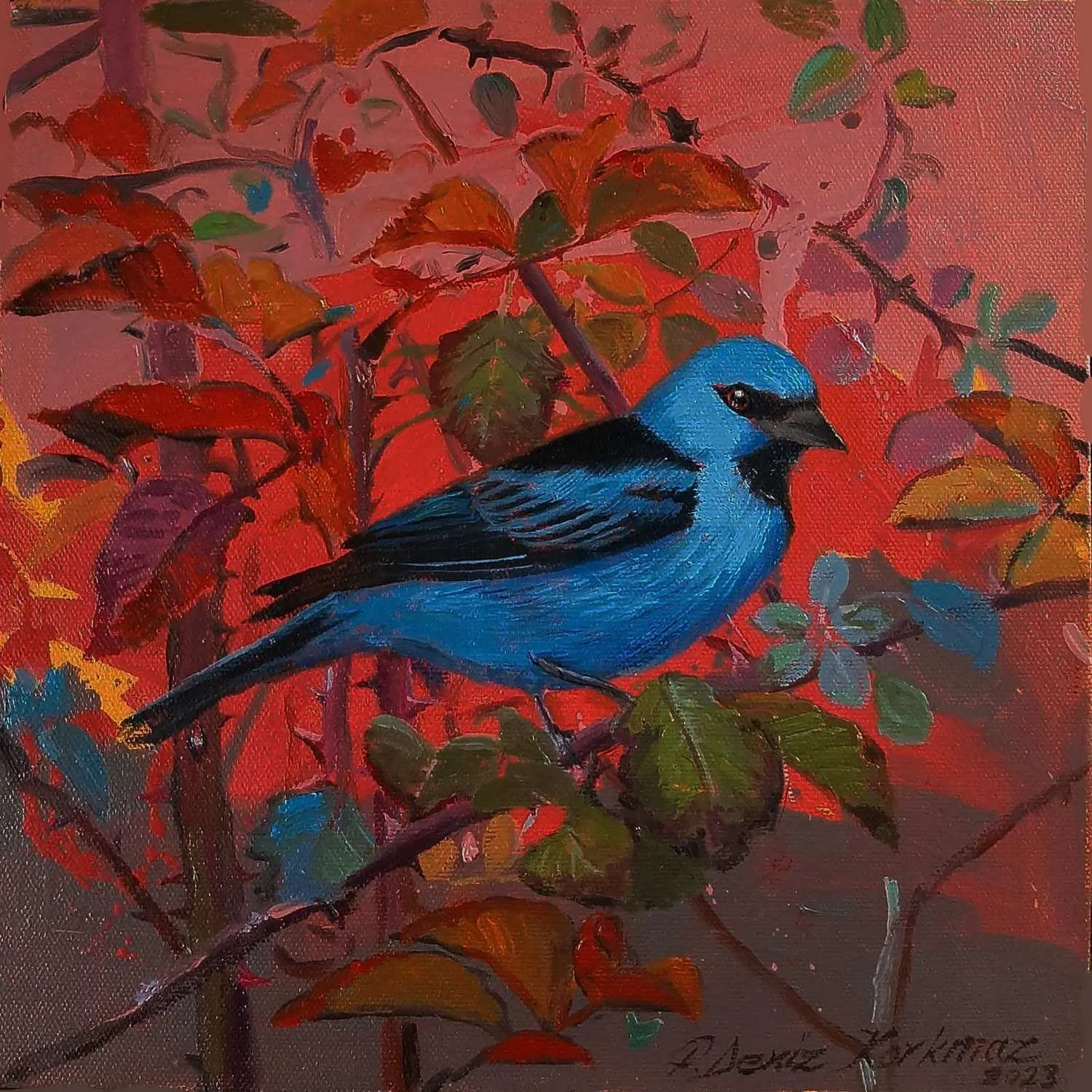 2003 yılında, Atatürk Üniversitesi, Güzel Sanatlar Fakültesi, Resim Bölümü’nü fakülte birincisi olarak bitirdi. 2006 yılında aynı üniversitenin Sosyal Bilimler Enstitüsü, Resim Bölümü, Yüksek Lisans Programını “Eleştiri Kuramı Olarak Feminizm ve Sanata Yansımaları: Feminist Sanat” adlı tezini vererek tamamladı. 2010 yılında ise, Mimar Sinan Güzel Sanatlar Üniversitesi, Resim Bölümü, Sanatta Yeterlik Programını “Dada’dan Günümüze Plastik Sanatlarda Anti-Estetik Form Olarak Beden” adlı tezini vererek bitirmiştir. 2014 yılında Doçent, 2019 yılında Profesör unvanı alan Korkmaz, halen Eskişehir Osmangazi Üniversitesi, Sanat ve Tasarım Fakültesi, Görsel Sanatlar Bölümü’nde öğretim üyesi ve Bölüm Başkanı olarak çalışmaktadır. Yurt içinde 6, yurt dışında 4 olmak üzere toplam 10 kişisel sergi açmış, sempozyum ve workshoplara katılmış, resimleri çok sayıda ulusal ve uluslar arası karma ve yarışmalı sergilerde ve müzayedelerde yer almıştır. Ayrıca resmi kurum ve kuruluşların yanı sıra özel koleksiyonlarda birçok çalışması bulunan Korkmaz’ın resim yarışmalarından ve kurumlardan elde edilmiş altı ödülü bulunmaktadır. F. Deniz Korkmaz, figürün farklı anlamlar yarattığı çok katmanlı yapıdan beslenmektedir. Yapıtın varlığının neden olduğu kavramsal bağlamdaki heterojen yapı, yeni sorgulamalara ve açılımlara iten sebeplerden biridir. Korkmaz’ın sanatsal sorunsallarının esasını oluşturan nedenler ise; farkında olunmayan ya da kanıksanan, alelade diye tanımlanan oluşlara yeni bir biçimde bakabilme, aynı ya da farklı cinsler arasındaki sözlü ya da sözsüz “ben” diyaloglarına, iki boyutlu düzlemde, sorulması ötelenen şeyleri sorulabilir kılma ve kimi zaman malzemenin olanaklarıyla sözden arınmış cevaplar verebilme yönündedir. Korkmaz’ın sanat geçmişinin başlangıcından itibaren ana bağlamı olan figüratif anlatımı, son yıllarda doğa teması üzerine yoğunlaşarak çeşitlenmeye başlamıştır. Yürütücüsü olduğu Eskişehir, Bursa, Bilecik illeri ve civarlarında görülen kuş türleri üzerine yapılan bilimsel ve aynı zamanda sanatsal bir projeden dolayı şehirlerde yaşayan kuş türleri üzerine odaklanmıştır. Etrafımızda varlıklarını çoğunlukla fark edemediğimiz küçük kuşların yanı sıra şehirlere sıkışmış bitki türleri, uyumlu bir birliktelikle sanatın dışavurumcu olanakları içerisinde yeniden tasvir edilmiştir. Bitki ve kuş türlerinin yanı sıra nihayetinde insan figürleriyle çeşitlenen, fantastik bir kurgu içerisinde, soyut dışavurumcu arka plan eşliğinde, büyük ebatlı figür çalışmalarında ise, beden, kimlik, cinsiyet, iktidar kavramlarını sembolik biçimlerde sunarak bu kavramlar üzerinden her türlü otoriteye dolaylı eleştiriler getirmektedir.