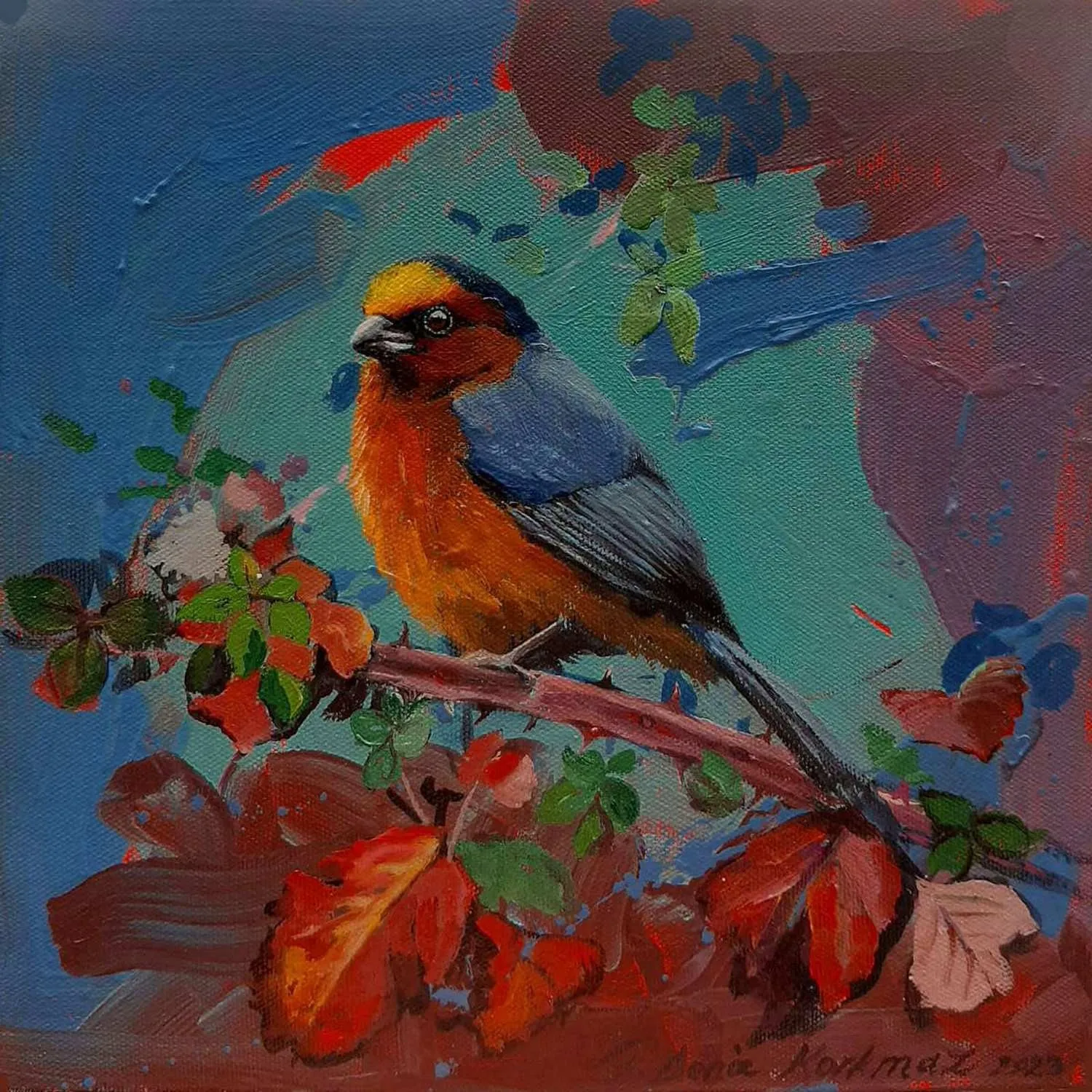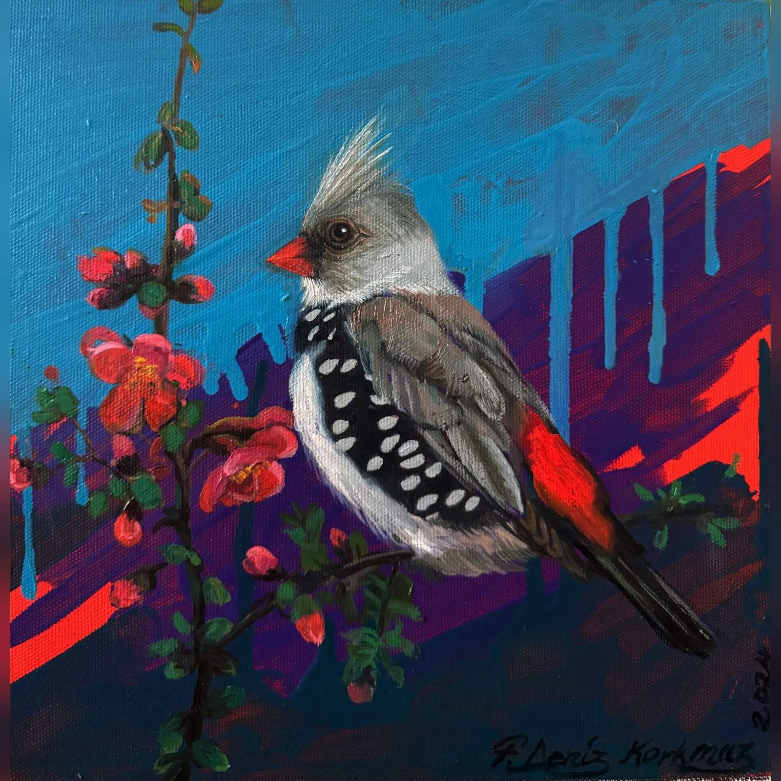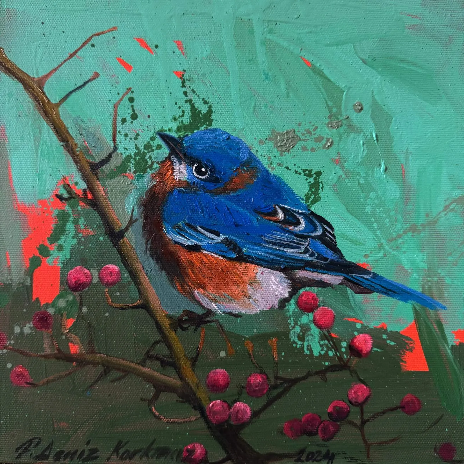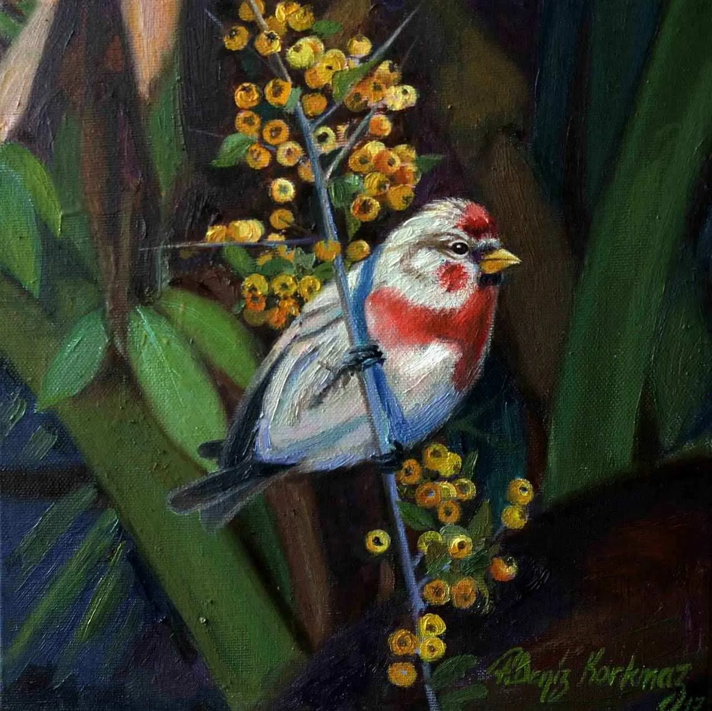 2003 yılında, Atatürk Üniversitesi, Güzel Sanatlar Fakültesi, Resim Bölümü’nü fakülte birincisi olarak bitirdi. 2006 yılında aynı üniversitenin Sosyal Bilimler Enstitüsü, Resim Bölümü, Yüksek Lisans Programını “Eleştiri Kuramı Olarak Feminizm ve Sanata Yansımaları: Feminist Sanat” adlı tezini vererek tamamladı. 2010 yılında ise, Mimar Sinan Güzel Sanatlar Üniversitesi, Resim Bölümü, Sanatta Yeterlik Programını “Dada’dan Günümüze Plastik Sanatlarda Anti-Estetik Form Olarak Beden” adlı tezini vererek bitirmiştir. 2014 yılında Doçent, 2019 yılında Profesör unvanı alan Korkmaz, halen Eskişehir Osmangazi Üniversitesi, Sanat ve Tasarım Fakültesi, Görsel Sanatlar Bölümü’nde öğretim üyesi ve Bölüm Başkanı olarak çalışmaktadır. Yurt içinde 6, yurt dışında 4 olmak üzere toplam 10 kişisel sergi açmış, sempozyum ve workshoplara katılmış, resimleri çok sayıda ulusal ve uluslar arası karma ve yarışmalı sergilerde ve müzayedelerde yer almıştır. Ayrıca resmi kurum ve kuruluşların yanı sıra özel koleksiyonlarda birçok çalışması bulunan Korkmaz’ın resim yarışmalarından ve kurumlardan elde edilmiş altı ödülü bulunmaktadır. F. Deniz Korkmaz, figürün farklı anlamlar yarattığı çok katmanlı yapıdan beslenmektedir. Yapıtın varlığının neden olduğu kavramsal bağlamdaki heterojen yapı, yeni sorgulamalara ve açılımlara iten sebeplerden biridir. Korkmaz’ın sanatsal sorunsallarının esasını oluşturan nedenler ise; farkında olunmayan ya da kanıksanan, alelade diye tanımlanan oluşlara yeni bir biçimde bakabilme, aynı ya da farklı cinsler arasındaki sözlü ya da sözsüz “ben” diyaloglarına, iki boyutlu düzlemde, sorulması ötelenen şeyleri sorulabilir kılma ve kimi zaman malzemenin olanaklarıyla sözden arınmış cevaplar verebilme yönündedir. Korkmaz’ın sanat geçmişinin başlangıcından itibaren ana bağlamı olan figüratif anlatımı, son yıllarda doğa teması üzerine yoğunlaşarak çeşitlenmeye başlamıştır. Yürütücüsü olduğu Eskişehir, Bursa, Bilecik illeri ve civarlarında görülen kuş türleri üzerine yapılan bilimsel ve aynı zamanda sanatsal bir projeden dolayı şehirlerde yaşayan kuş türleri üzerine odaklanmıştır. Etrafımızda varlıklarını çoğunlukla fark edemediğimiz küçük kuşların yanı sıra şehirlere sıkışmış bitki türleri, uyumlu bir birliktelikle sanatın dışavurumcu olanakları içerisinde yeniden tasvir edilmiştir. Bitki ve kuş türlerinin yanı sıra nihayetinde insan figürleriyle çeşitlenen, fantastik bir kurgu içerisinde, soyut dışavurumcu arka plan eşliğinde, büyük ebatlı figür çalışmalarında ise, beden, kimlik, cinsiyet, iktidar kavramlarını sembolik biçimlerde sunarak bu kavramlar üzerinden her türlü otoriteye dolaylı eleştiriler getirmektedir.