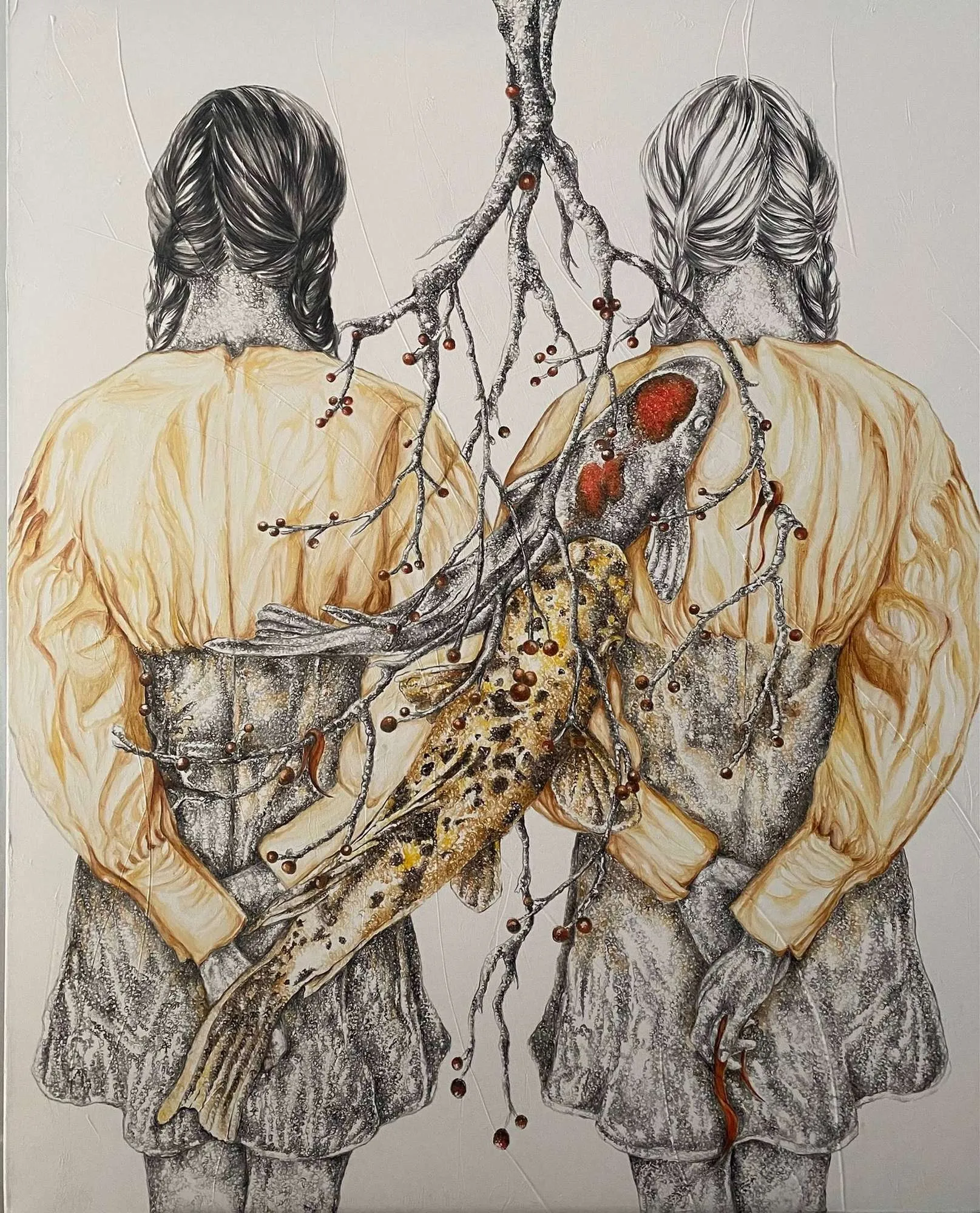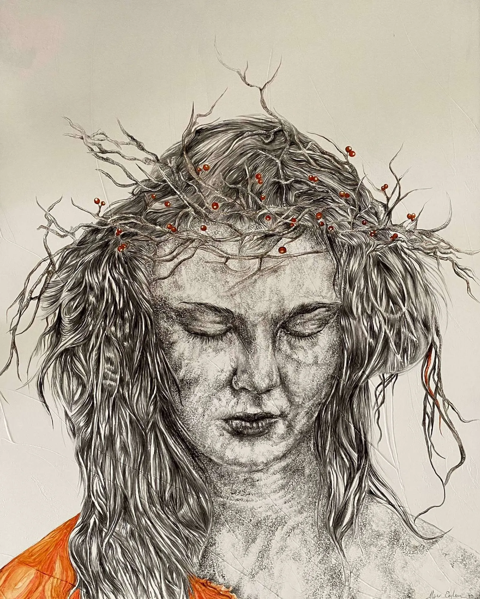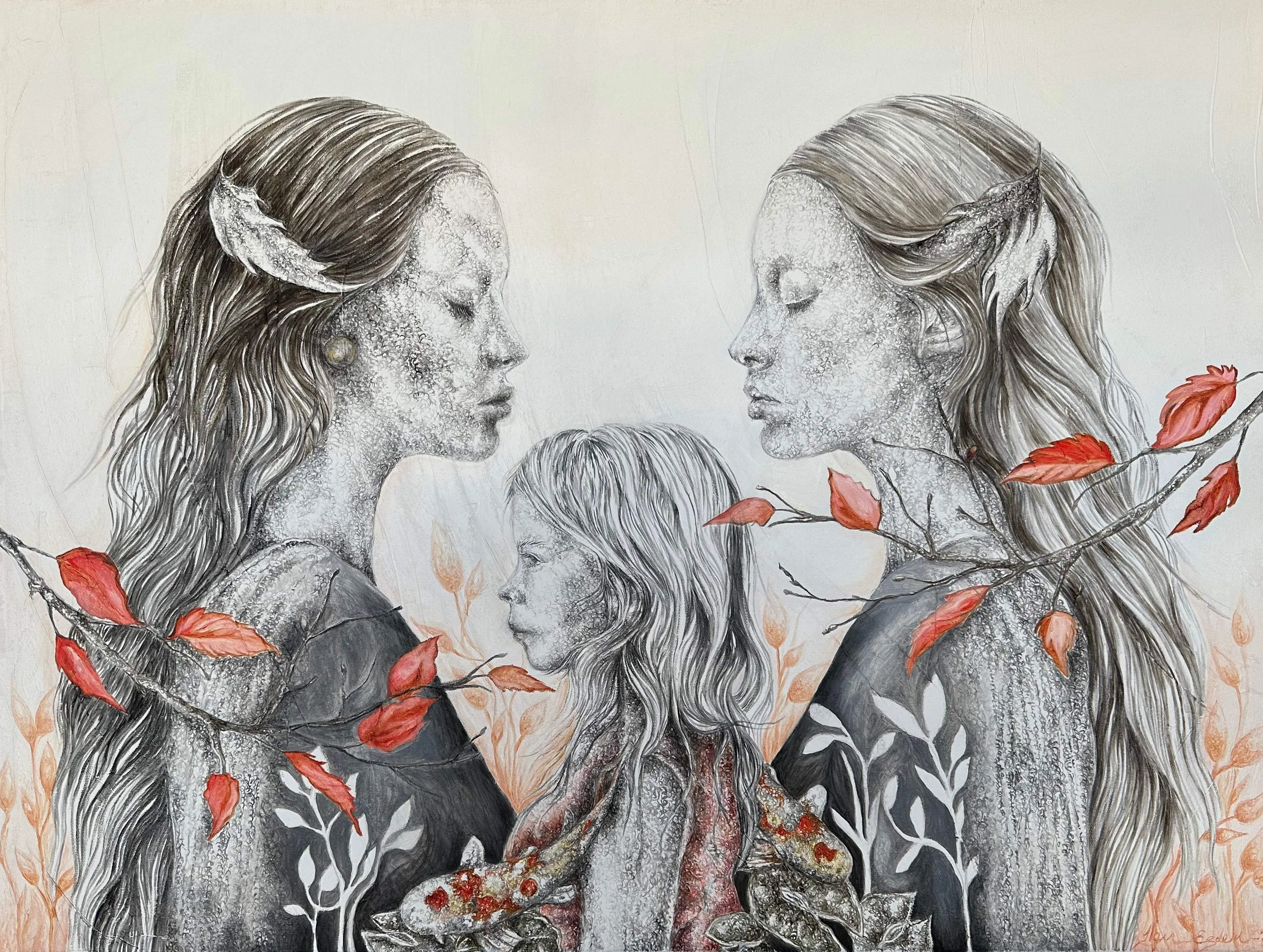 Each of her paintings is a record of intense emotions, leading us into Erdem’s unique world. Her main theme is the pure, innocent states of people when their voices are lost and unheard. She adds innocence to each of her figures: questioning our distance from the lost innocence as we move away from our childhood.