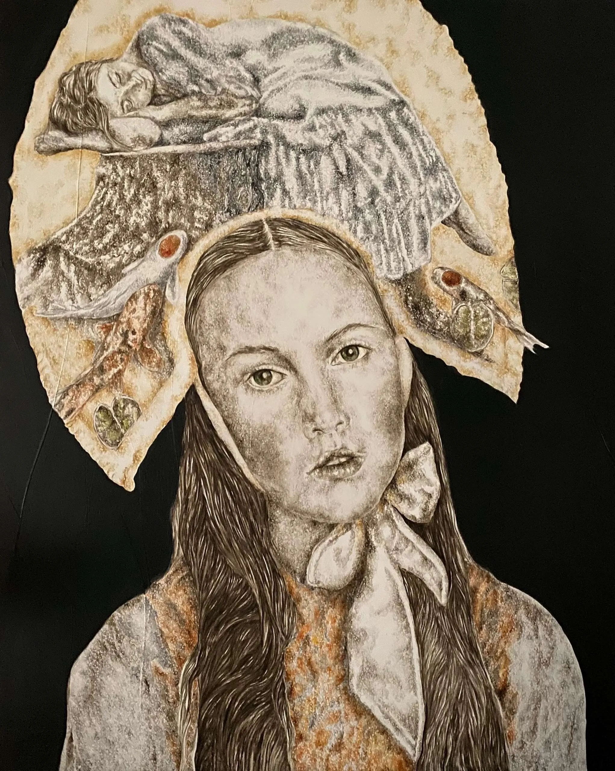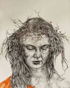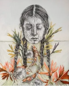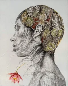 sessizliğe ulaşılabilir.” der ya TS Eliot, Ilgın Erdem’in suretleri de dingin bir sessizliğe ulaşıyor; masumiyeti ve huzuru kutsayarak, resminin içindeki derinliğe çekiyor izleyicisini. Sanatı masumiyetle dolu. Yiten masumiyetlerinin sessizliğini arıyor; susturulmuş kadınların, düşle gerçek arasındaki sükutunu. İzleyicisini içsel bir diyaloğa çağırıyor onun kadınları. Dünyanın yüklerinden arınarak, iç huzuru ve dinginliği, “burada ve şimdide olma” üzerinden, özgürleşmek için arıyorlar sanki. Ve suskuları, ruhlarını yoran sancıların suretlerindeki gölgesi.