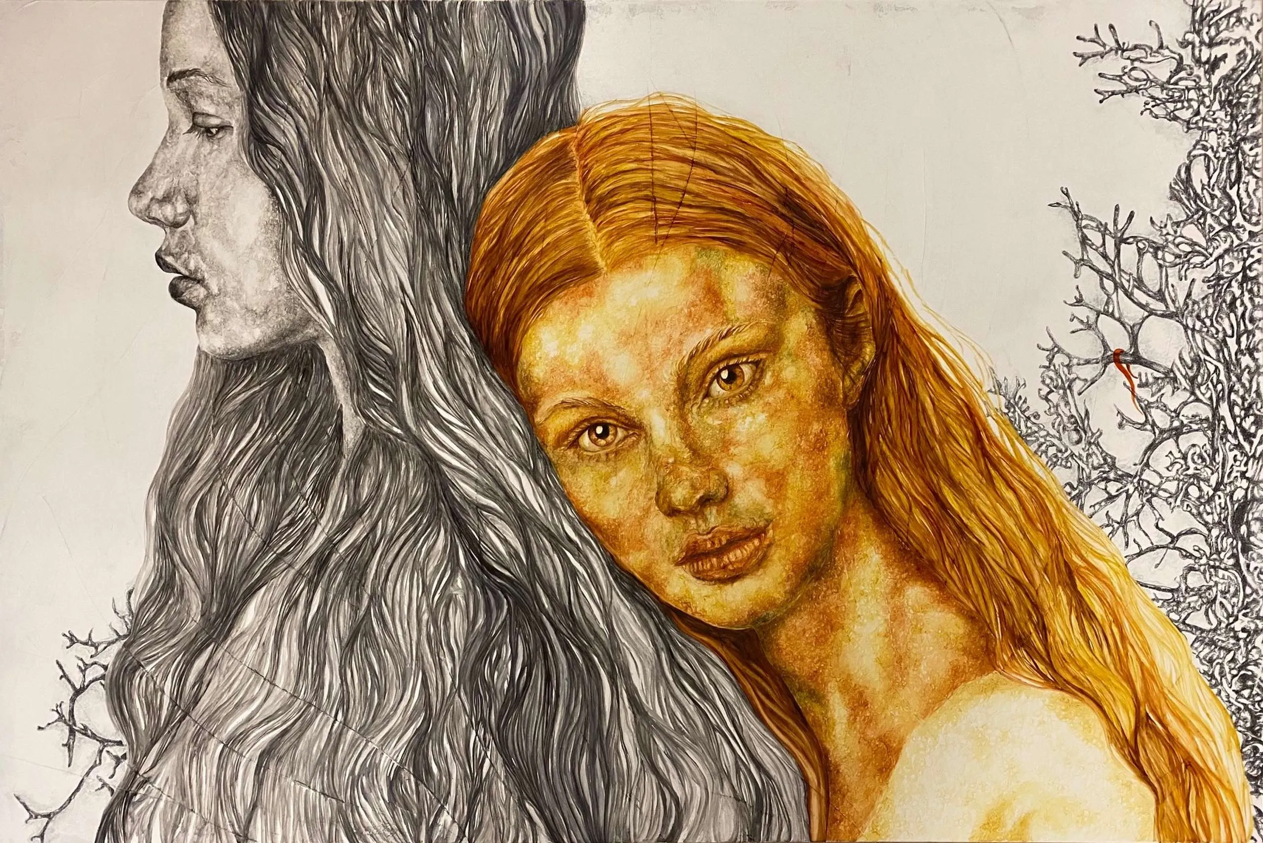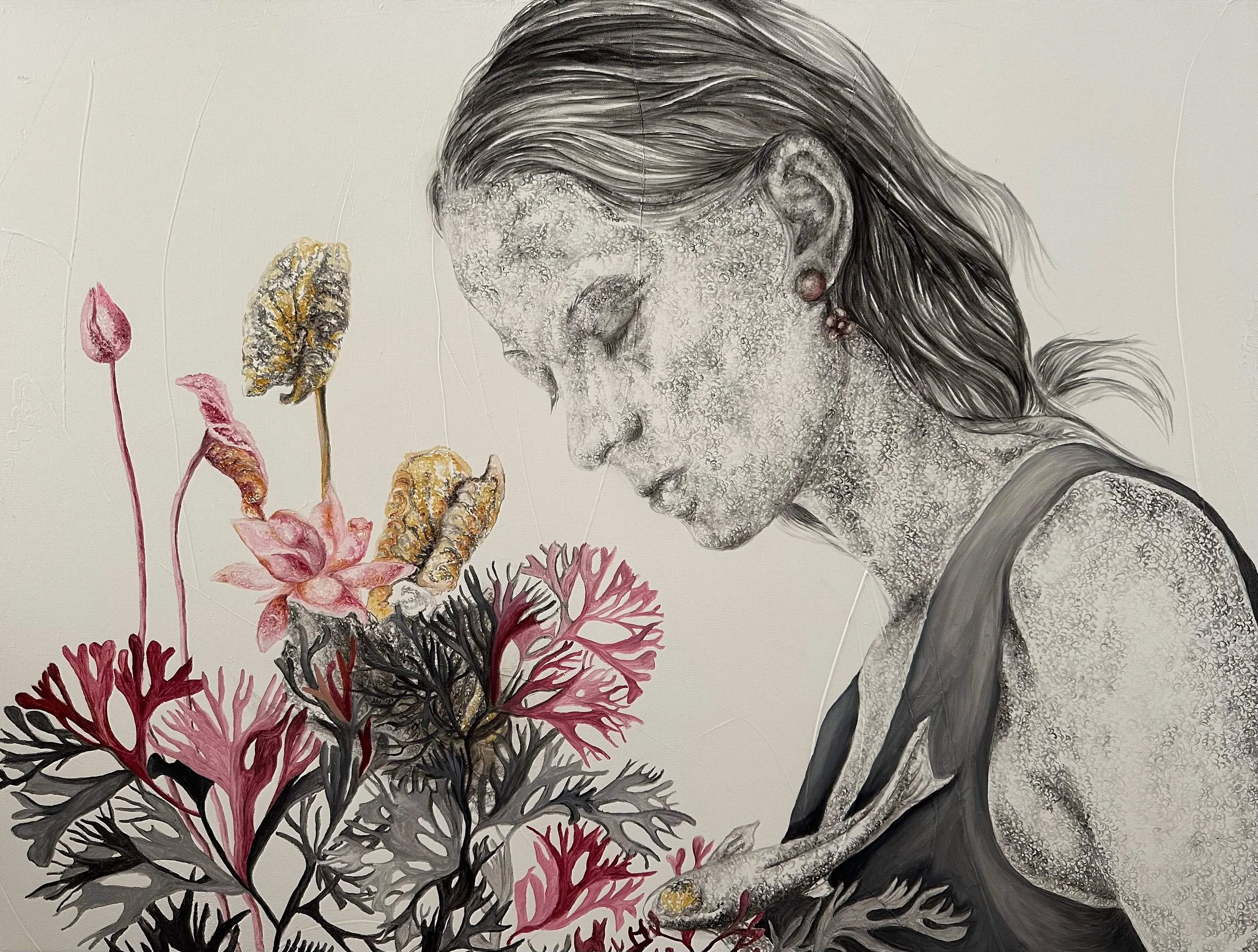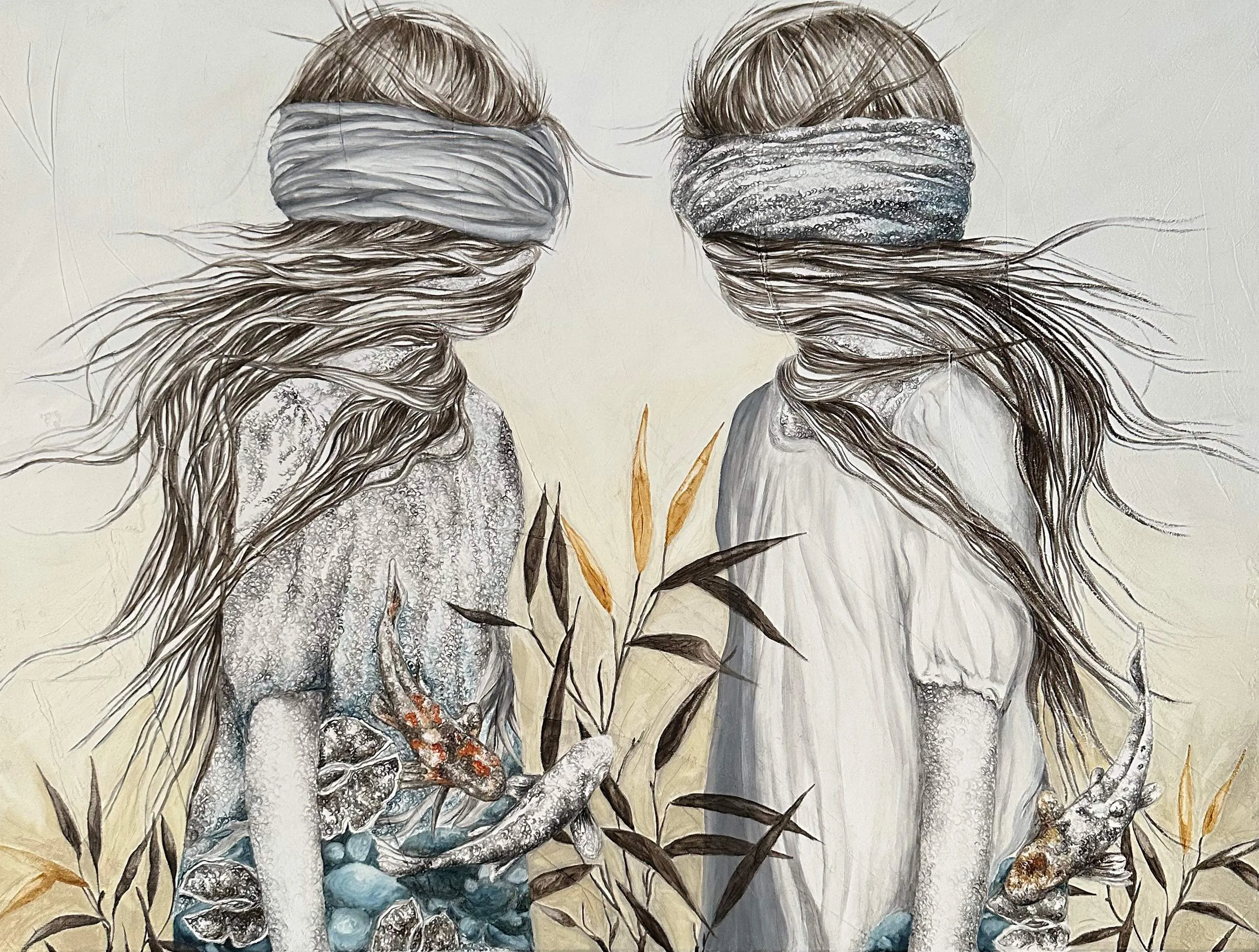 Purified from the suffocating, chaotic intensity of life and the noise of the world, the silent pictorial poetry of women who retreat inwardly, embarking on a journey to themselves, touches us deeply.