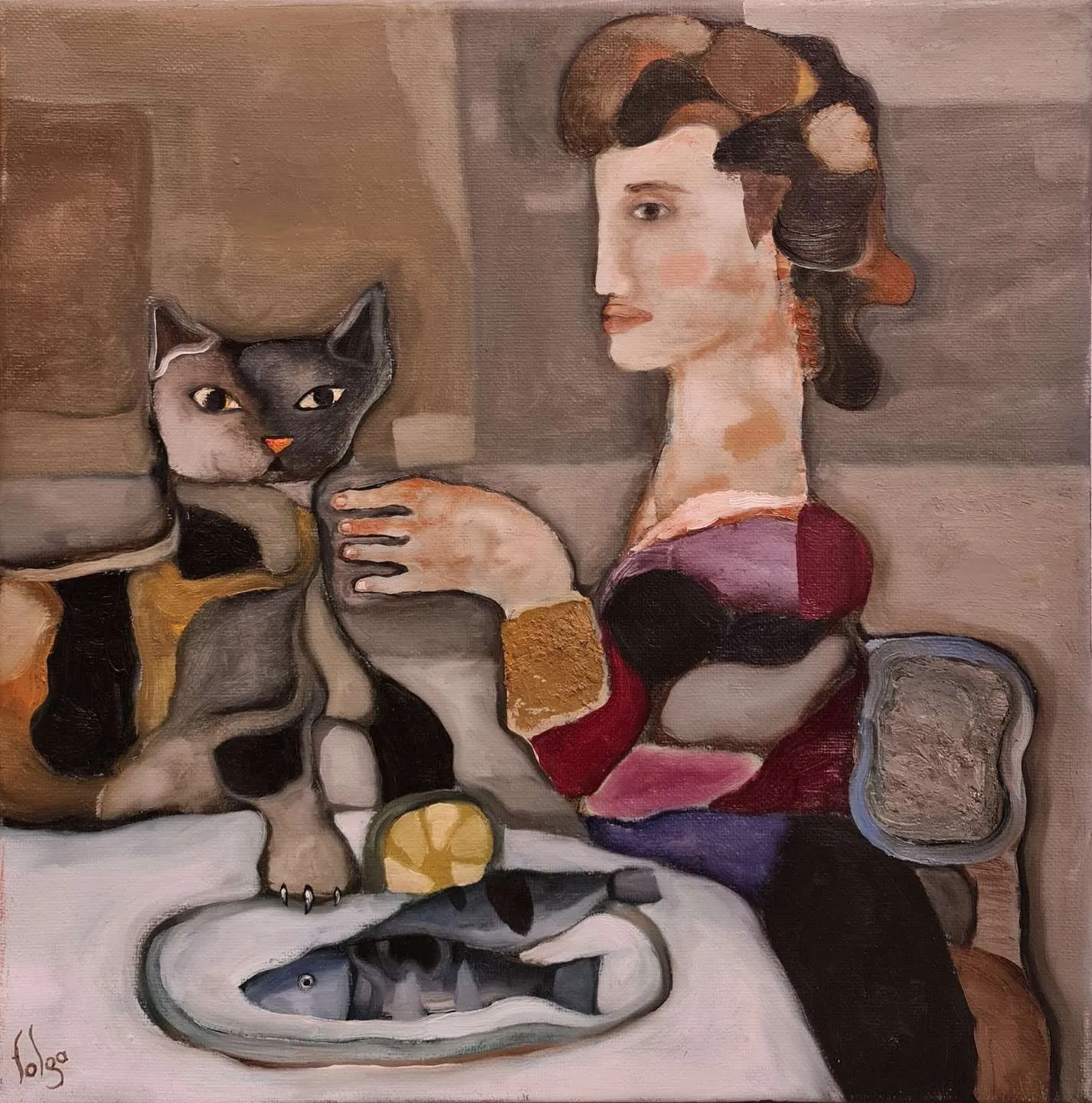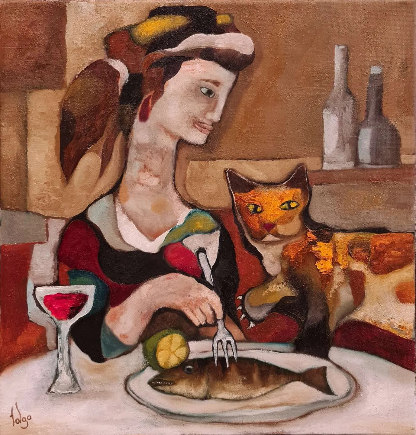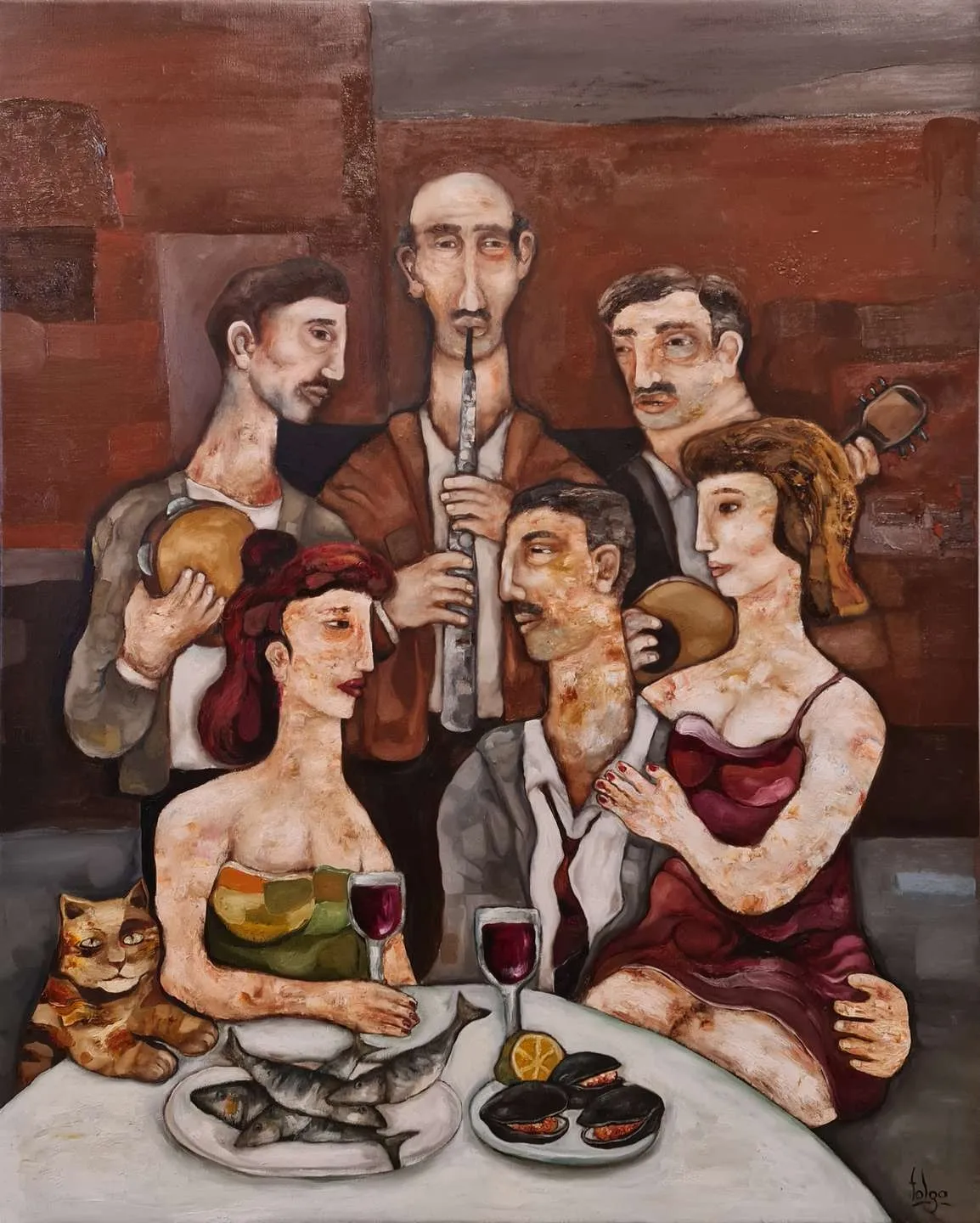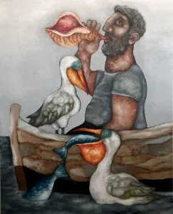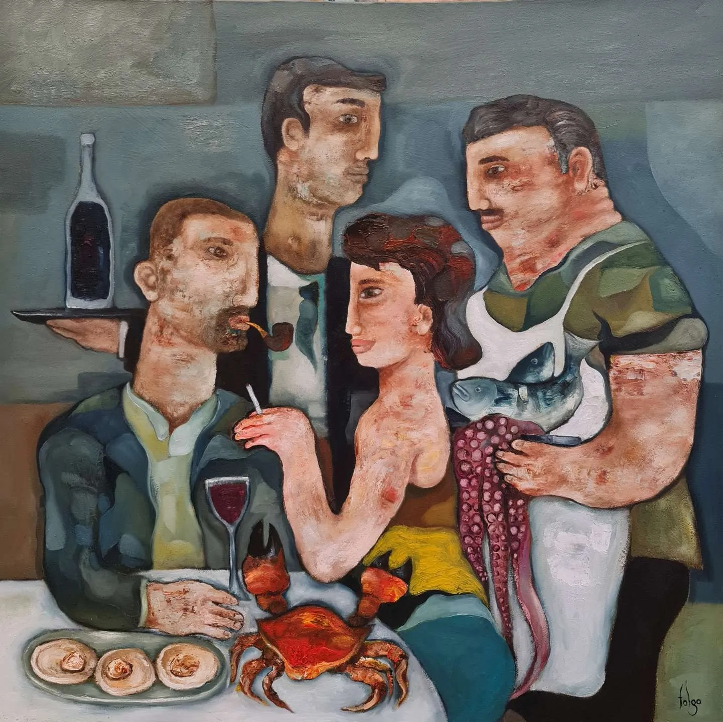 Sanatçı, Uluslararası Plastik Sanatçılar Derneği (U.P.S.D.) üyesidir ve Caddebostan’daki atölyesinde serbest ressam olarak çalışmalarına devam etmektedir. Murat Tolga’nın eserleri, insan ve hayvan figürlerini merkeze alarak toplumsal ve bireysel anlatımlar sunmaktadır. Bu eserlerinde ironi, yalnızlık ve yaratıcılığın getirdiği yoğunluk gibi temaları işleyen Tolga, özellikle hayvan figürlerine duyduğu ilgiyi resimlerine taşıyarak, kişisel deneyimlerinden beslenen özgün kompozisyonlar yaratmaktadır.