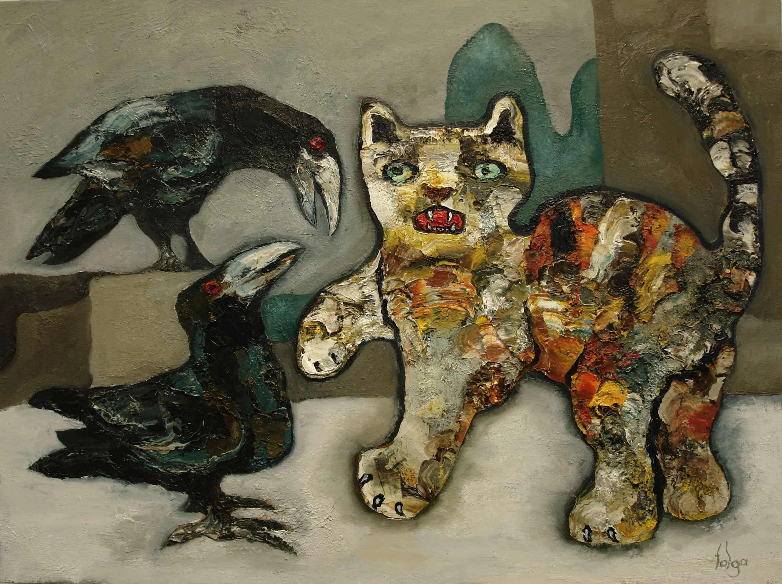 Yeni biçimlemelere açık bir sanatçı olan Murat Tolga, çağdaş düşünme mantığından yola çıkarak geliştirdiği resimleri, tuvalindeki işlemsel serüvenleri yaşayarak toplumun beğenisine sunmaktadır.
