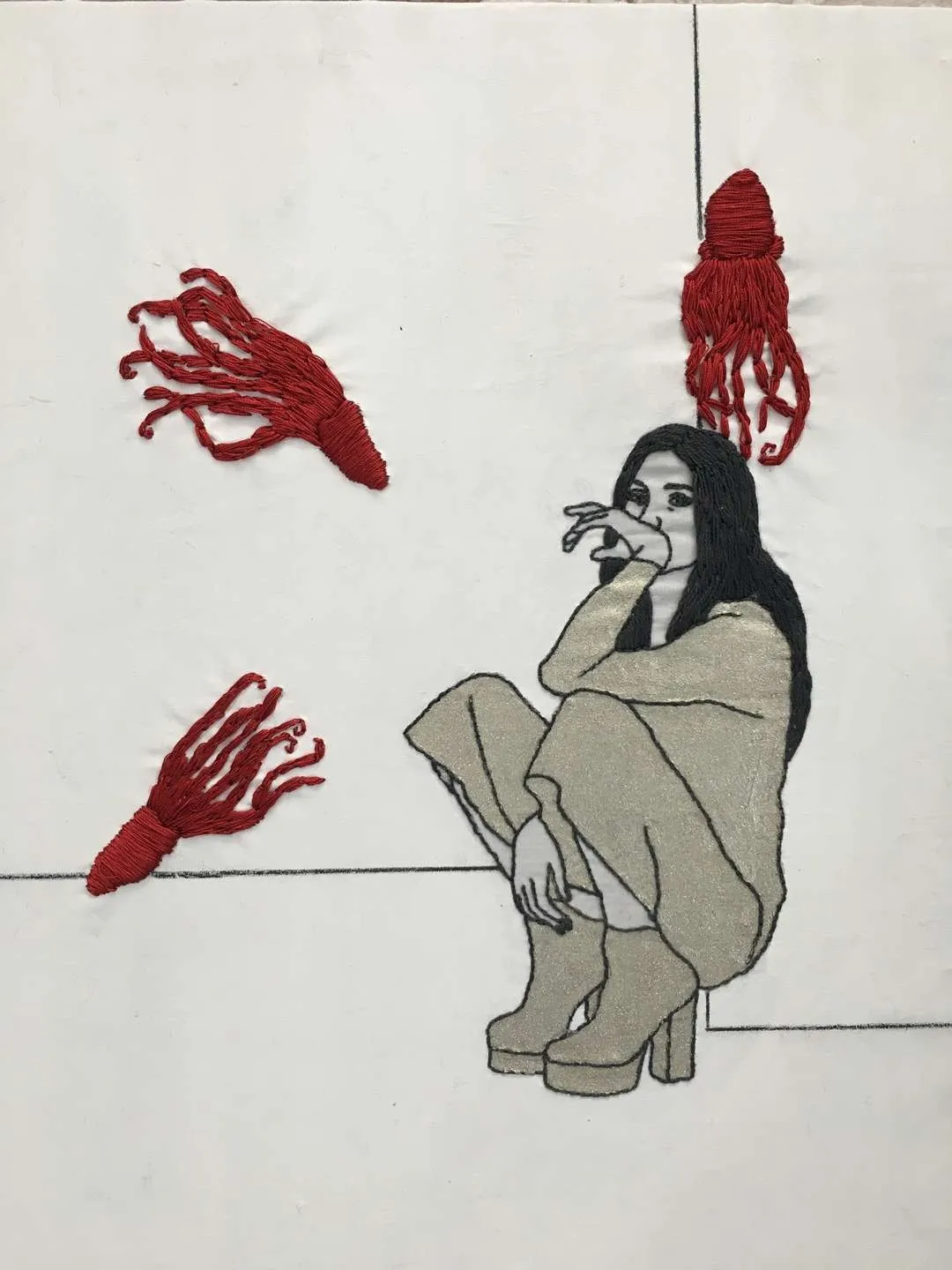 Eserlerini; kadın bedeni ve doğa ilişkisi çerçevesinde, biyolojik ve ruhsal süreçlerle ilgili kendi algısını görünür kılmak arayışıyla, dikiş tekniğini feminen bir tür meditasyon yöntemi olarak kullanarak oluşturmaktadır.