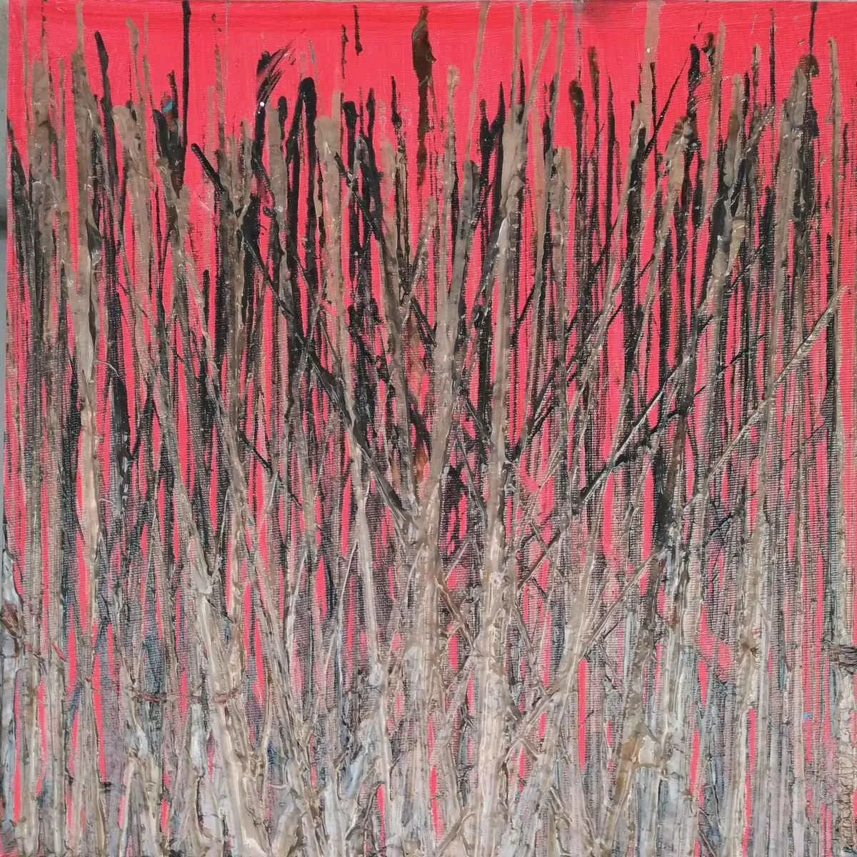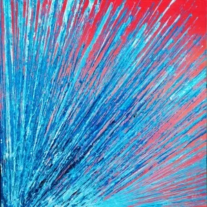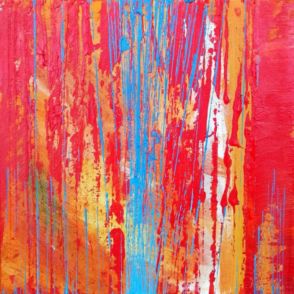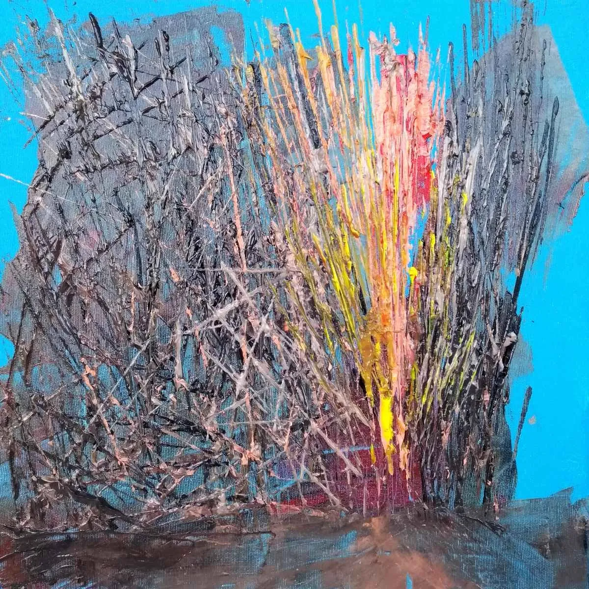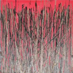 görselliklerden yola çıkarak tuval üzerende renkler ve lekelerle oluşturduğu resimlerinde