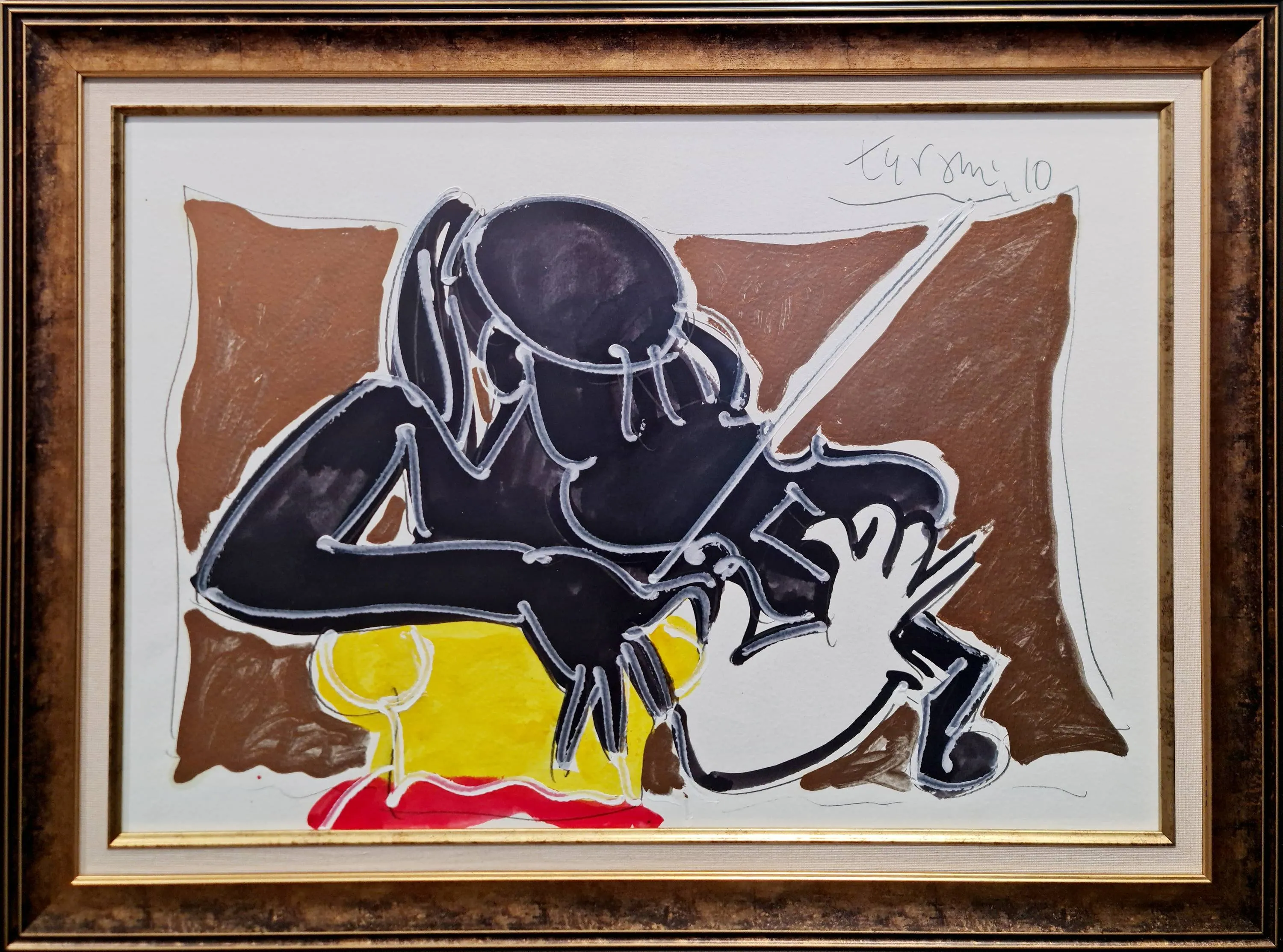 Tuval ve kâğıt yüzeyine damlattığı ya da sürdüğü boyalarla, oluşturduğu lekelerle; öznel dürtüleriyle şekillendirmiş kimi resimlerini. Görünüşü iz, özü devinim olan lekelerin diliyle; izleyicisine öznel okuma biçimleri sunmuş.