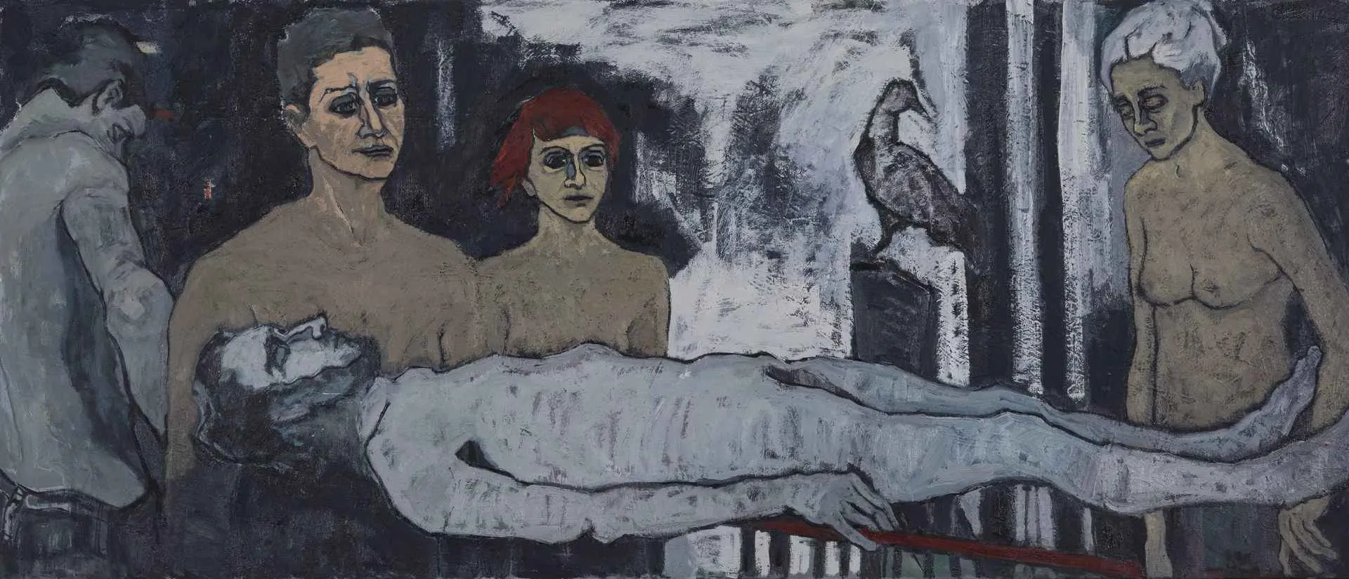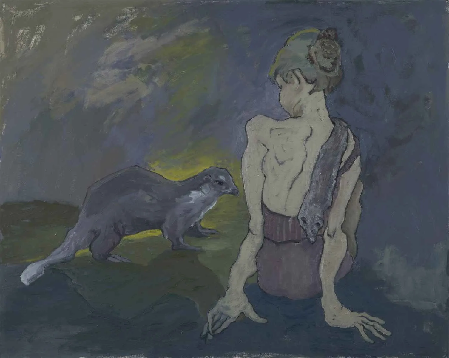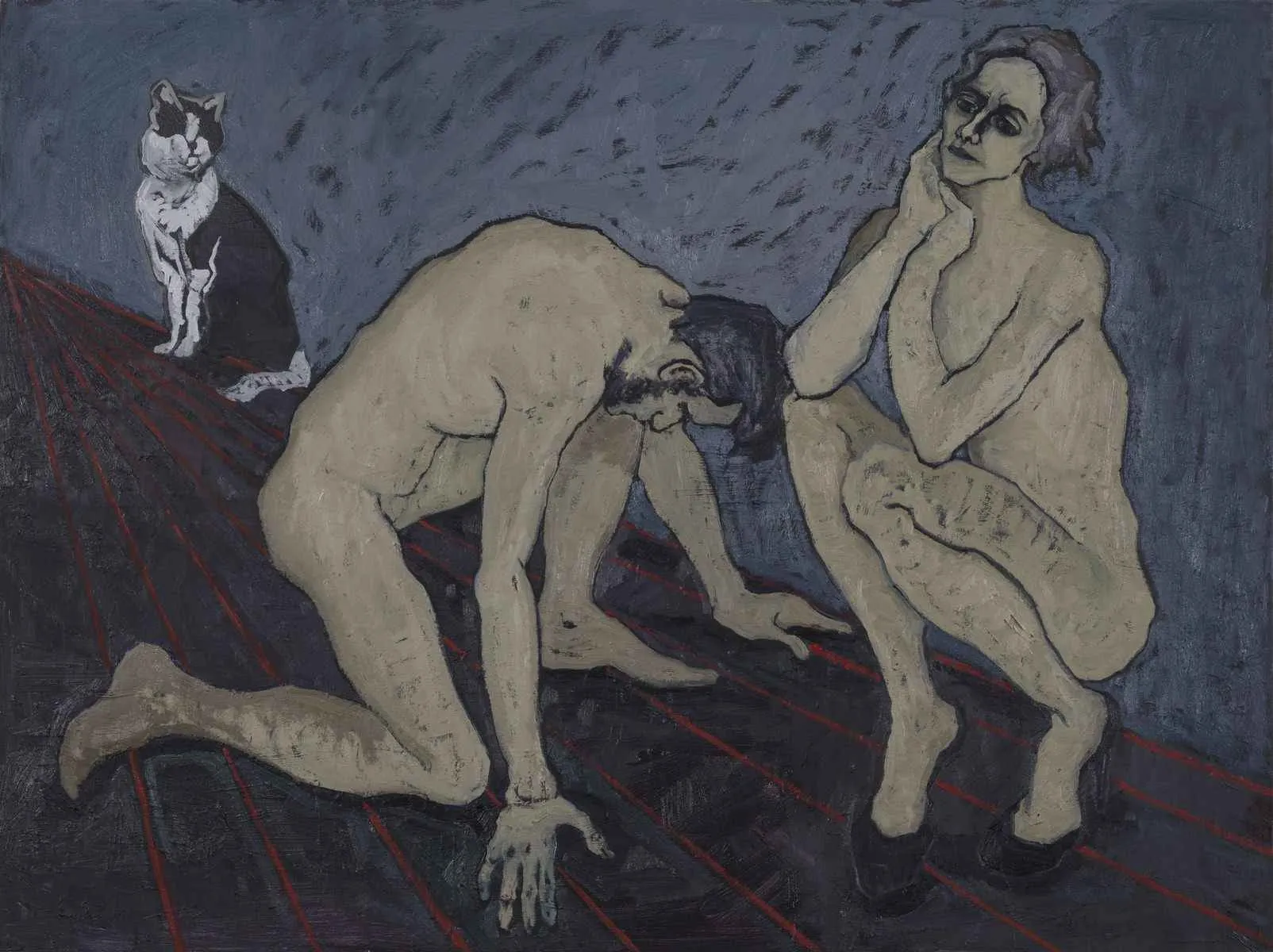Ayşenur Köksal kompozisyon kurgusuyla, açık-koyu düzeniyle, arka plandaki silüetlerin leke karakteriyle, mekandan konturlarla ayrılan figürlerin yarattığı oraya ait olma duygusuyla… Kökleri resim tarihinin derinlerinden beslenen ancak bugüne ve geleceğe ait…