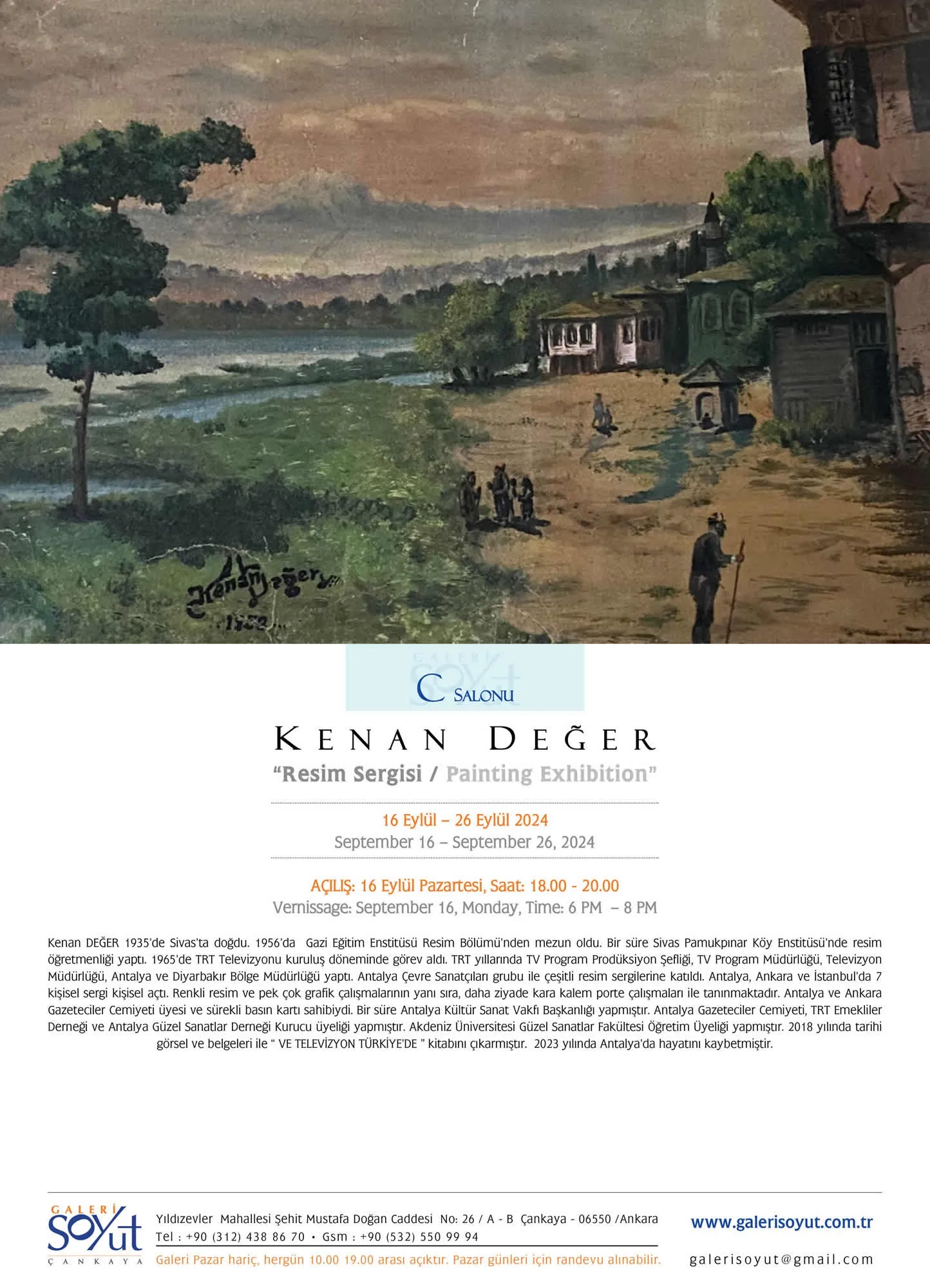 Sanatseverler, Kenan Değer’in eserlerini görmek ve sanatçının sade ama etkileyici anlatım dilini keşfetmek için sergiyi 16 - 26 Eylül tarihleri arasında Galeri Soyut Çankaya’da ziyaret edebilirler. Bu sergi, sanatçının eserlerini ilk kez deneyimleyecek olanlar için keyifli bir sanat gezisi sunmaktadır.