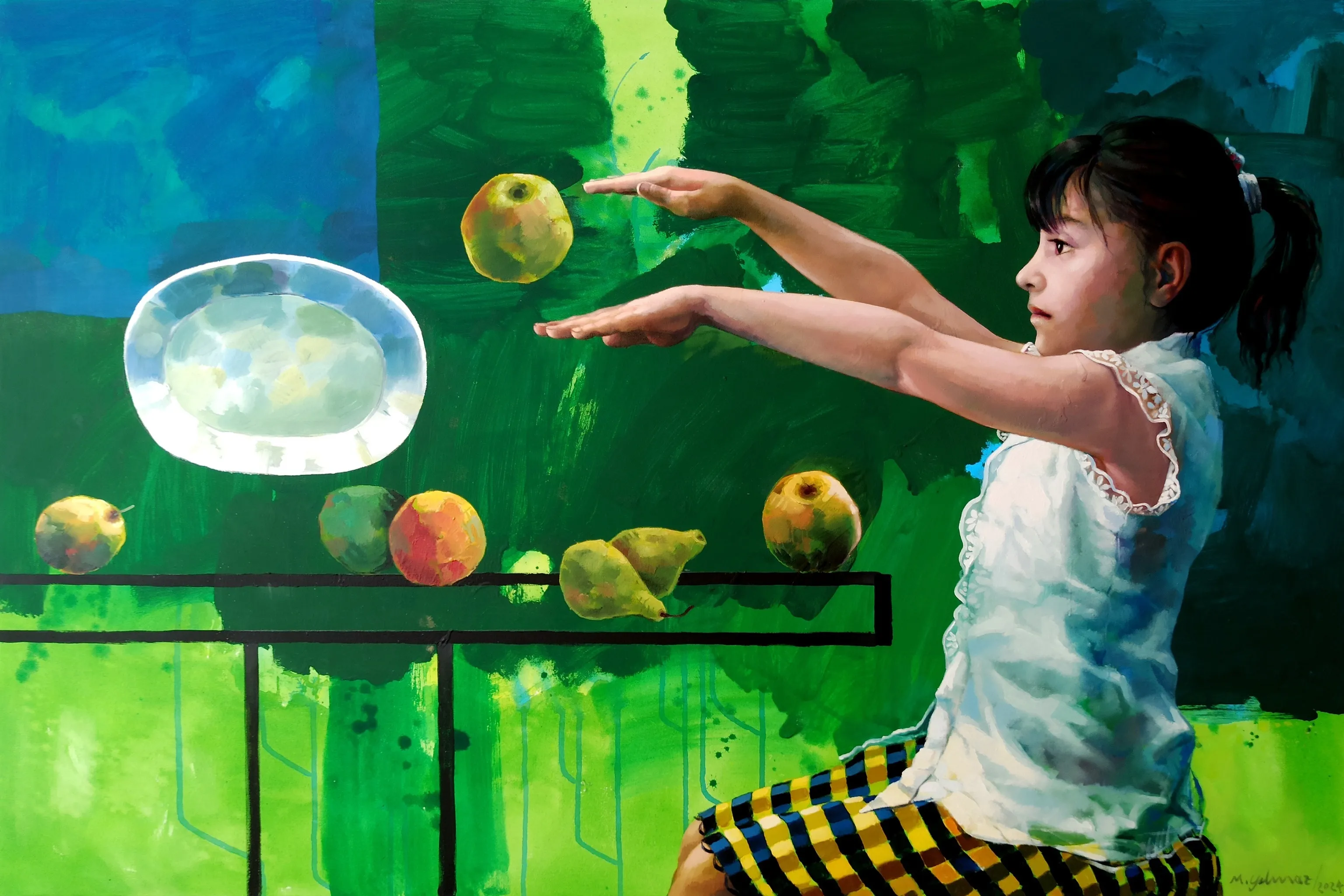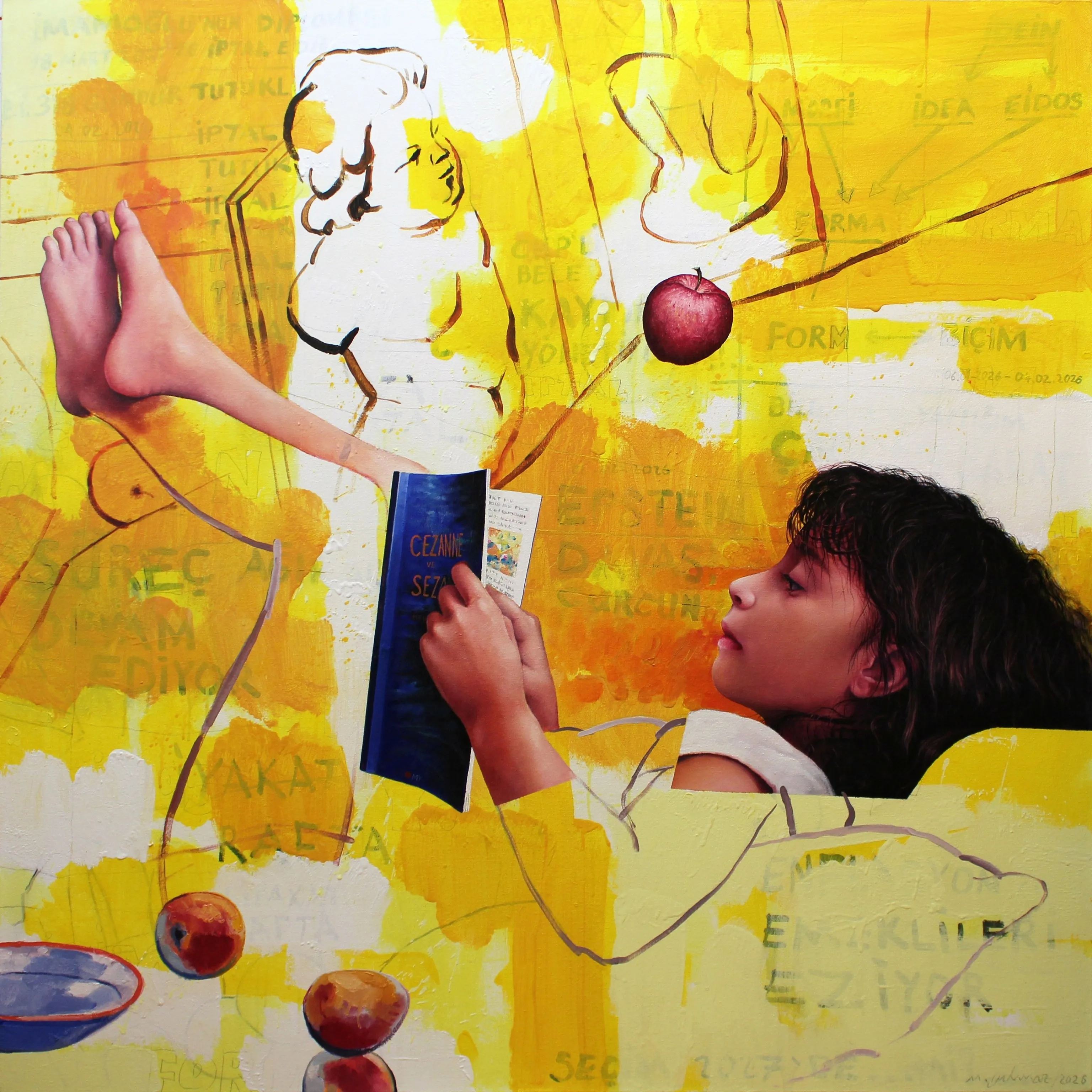 Mehmet Yılmaz, bu dizisinde kişisel bir bağdan yola çıkarak sanat tarihinin en güçlü figürlerinden biri olan Paul Cézanne ile kendi kızı Sezan’ı kavramsal bir düzlemde buluşturuyor. Sanatçı, "Sezan" isminin Türkçe kökenindeki "sez" ve "an" kelimelerinin yarattığı anlam katmanlarını, modern sanatın babası kabul edilen Cézanne’ın estetik mirasıyla harmanlıyor. Bu buluşma, sadece isim benzerliği üzerinden değil, "sezgi" ve "an" kavramlarının resim sanatındaki kalıcı izleri üzerinden şekilleniyor.