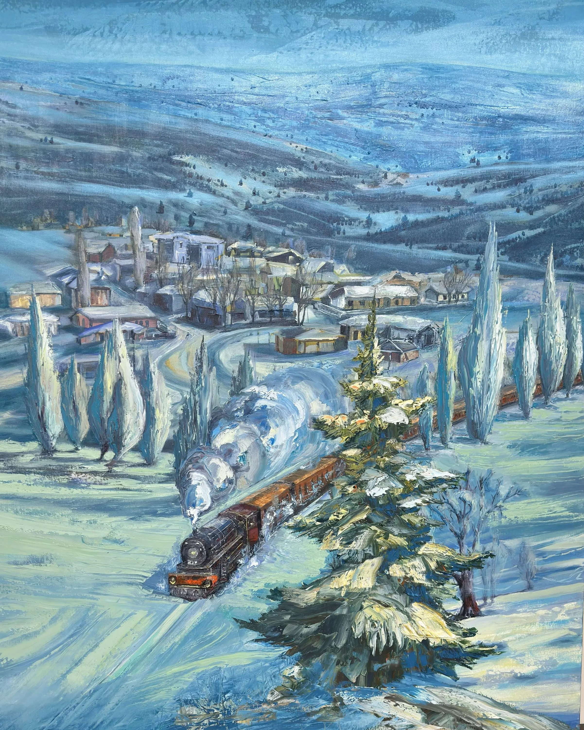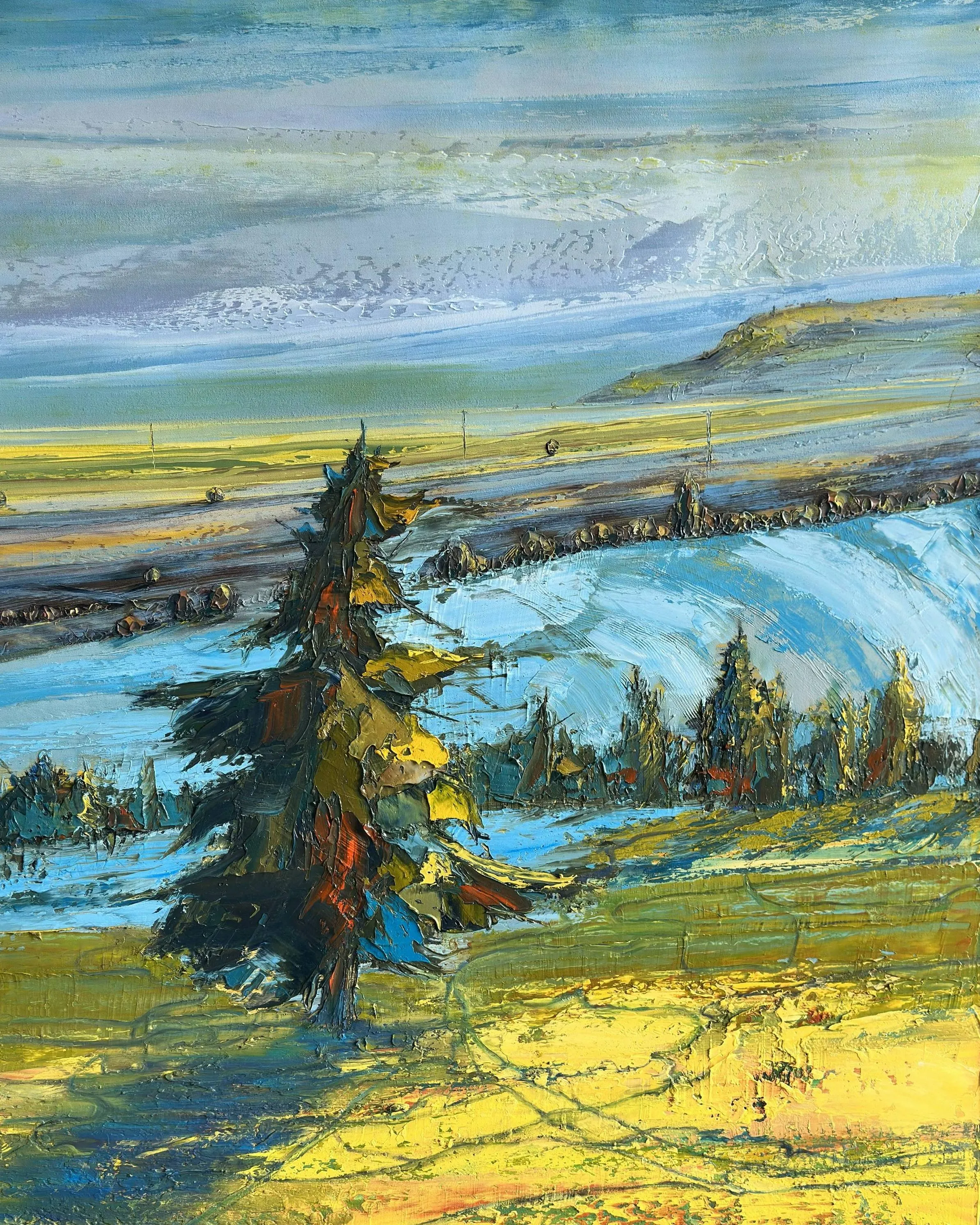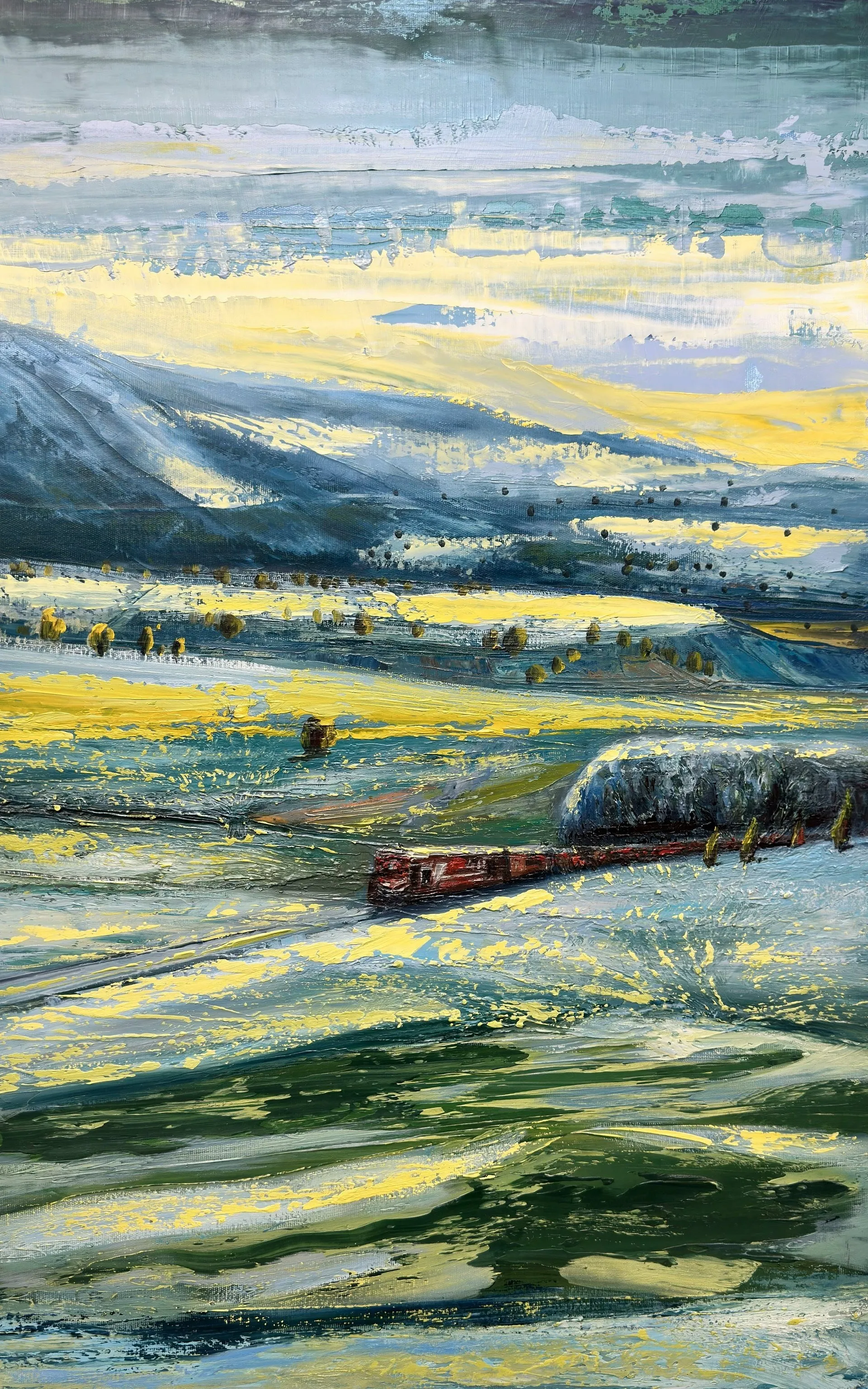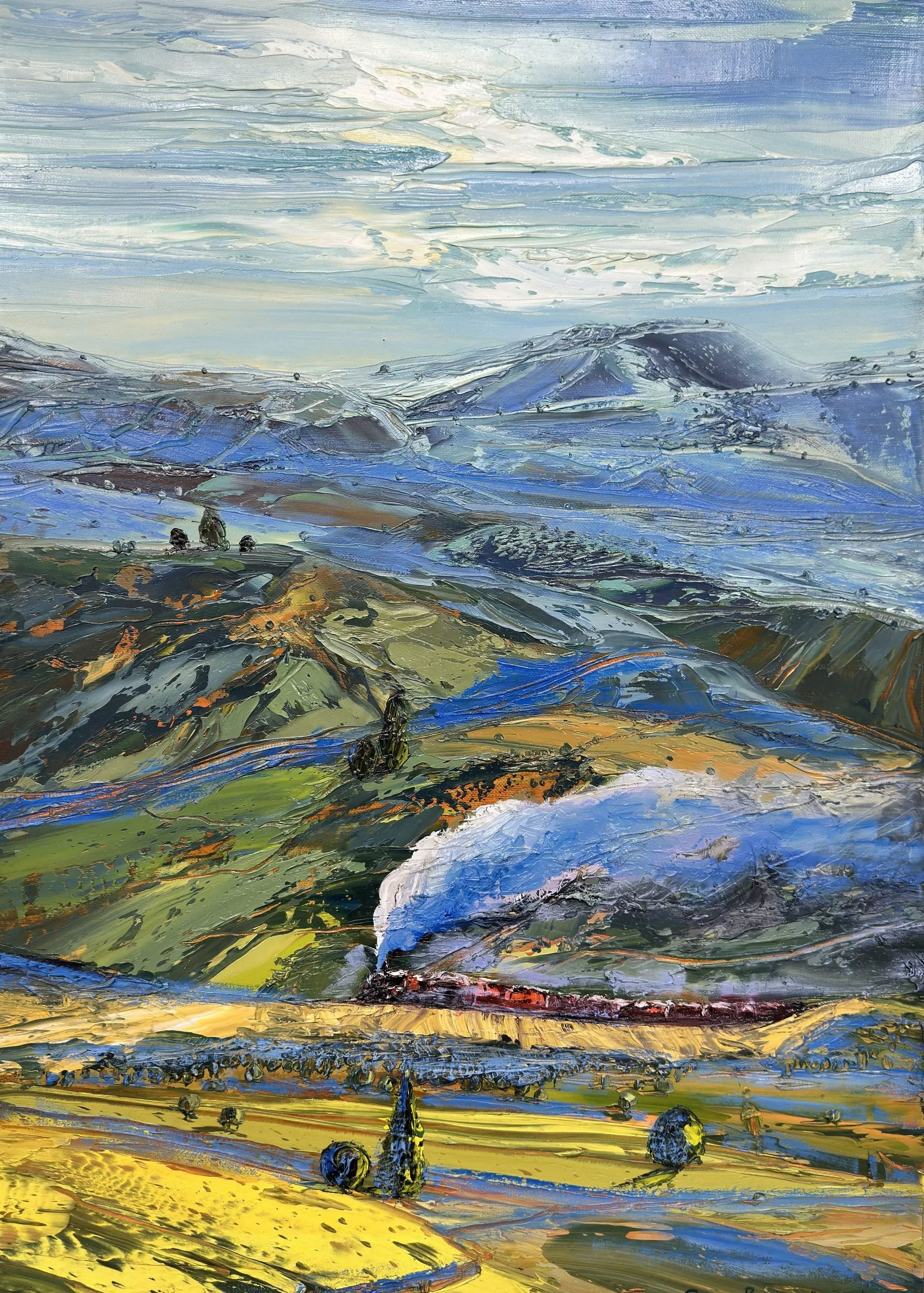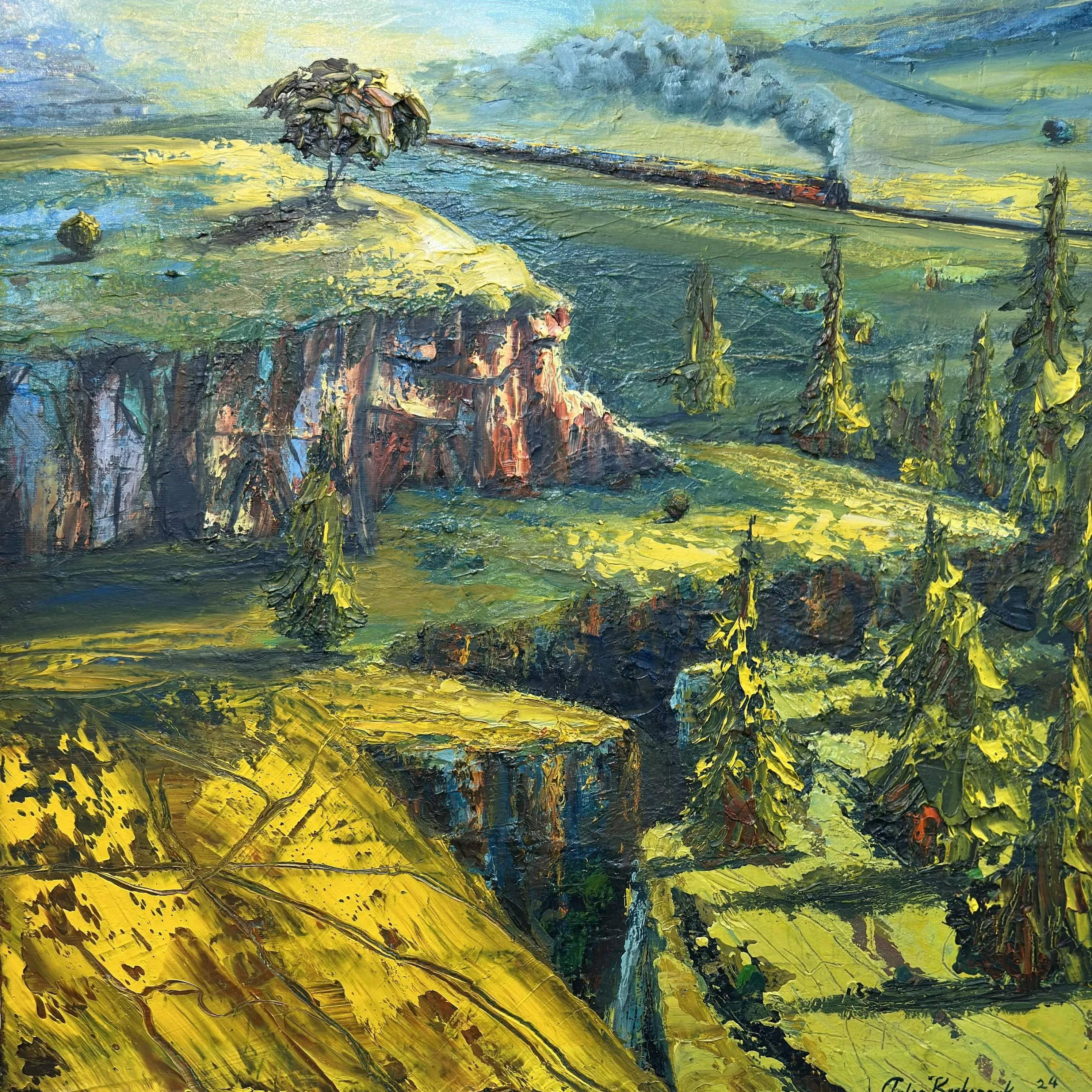 Tolga Boztoprak’ın resimleri, doğa ile insan arasındaki ilişkiyi doğrudan bir anlatı üzerinden değil; iz, çağrışım ve sessiz tanıklıklar aracılığıyla kurar. Sanatçı, peyzajı yalnızca görünen bir manzara olarak ele almaz; onu zaman, bellek ve yol kavramlarıyla birlikte düşünür. Bu bağlamda sergide yer alan resimler, bir coğrafyanın betimlenmesinden çok, o coğrafyada biriken yaşanmışlıkların ve içsel yolculukların görsel karşılığı olarak okunur.