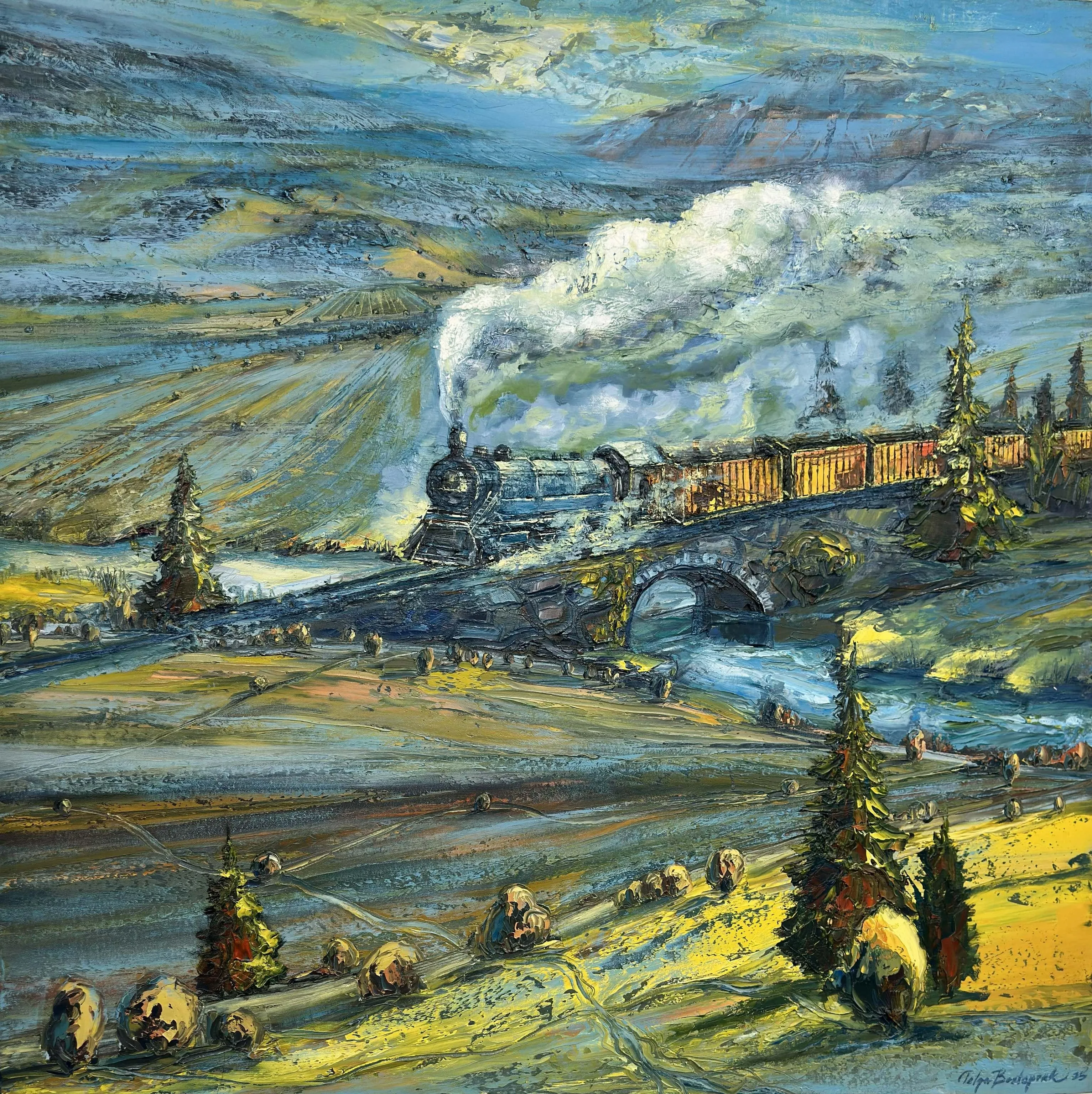 Sergide öne çıkan tren ve yol imgeleri, bu sessiz anlatının önemli taşıyıcılarıdır. Trenler, yalnızca bir ulaşım aracı olarak değil; zamanın akışı, geçip giden hayatlar ve bitmeyen bir yolculuk fikrinin simgesi olarak karşımıza çıkar. Doğanın içinden süzülerek ilerleyen raylar ve lokomotifler, insanın doğayla kurduğu geçici ve kırılgan temasları temsil eder. Bu temas, ne bütünüyle uyumlu ne de tamamen çatışmalıdır; aksine, sürekli bir arayış hâlini yansıtır.