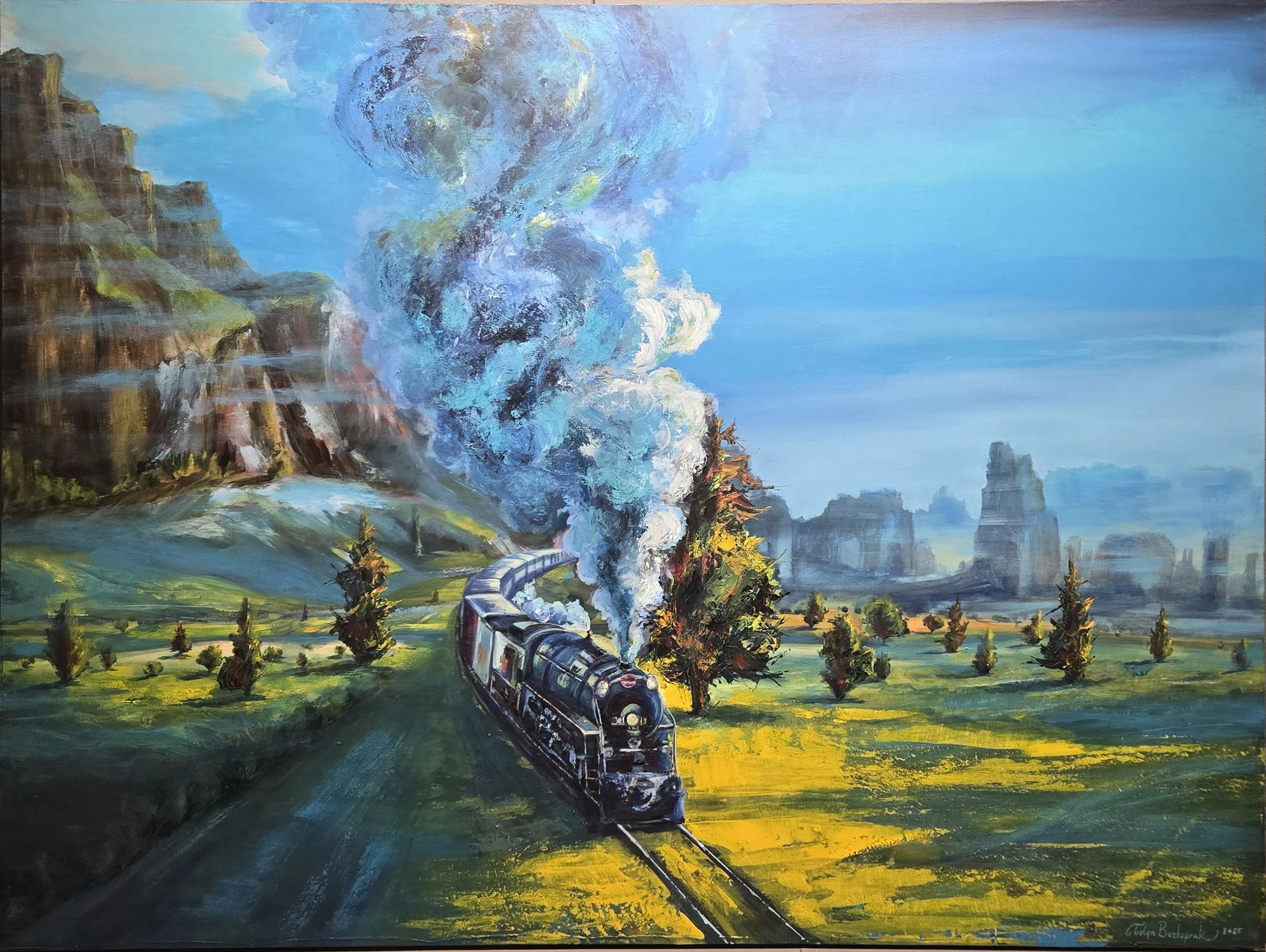 Peyzaj resmi geleneği, tarih boyunca doğayı betimlemenin ötesinde, insanın dünyadaki yerini sorgulayan bir alan olmuştur. Tolga Boztoprak, bu geleneği çağdaş bir duyarlılıkla yeniden ele alır. Onun resimleri, görünen dünyanın birebir kopyası olmaktan uzak; belleğin, sezginin ve yaşanmışlığın harmanlandığı tinsel bir kurguya dönüşür. Anadolu coğrafyası, bu bağlamda yalnızca bir mekân değil; sanatçının zaman, aidiyet ve yolculuk kavramları üzerinden düşündüğü bir iç manzaraya evrilir.