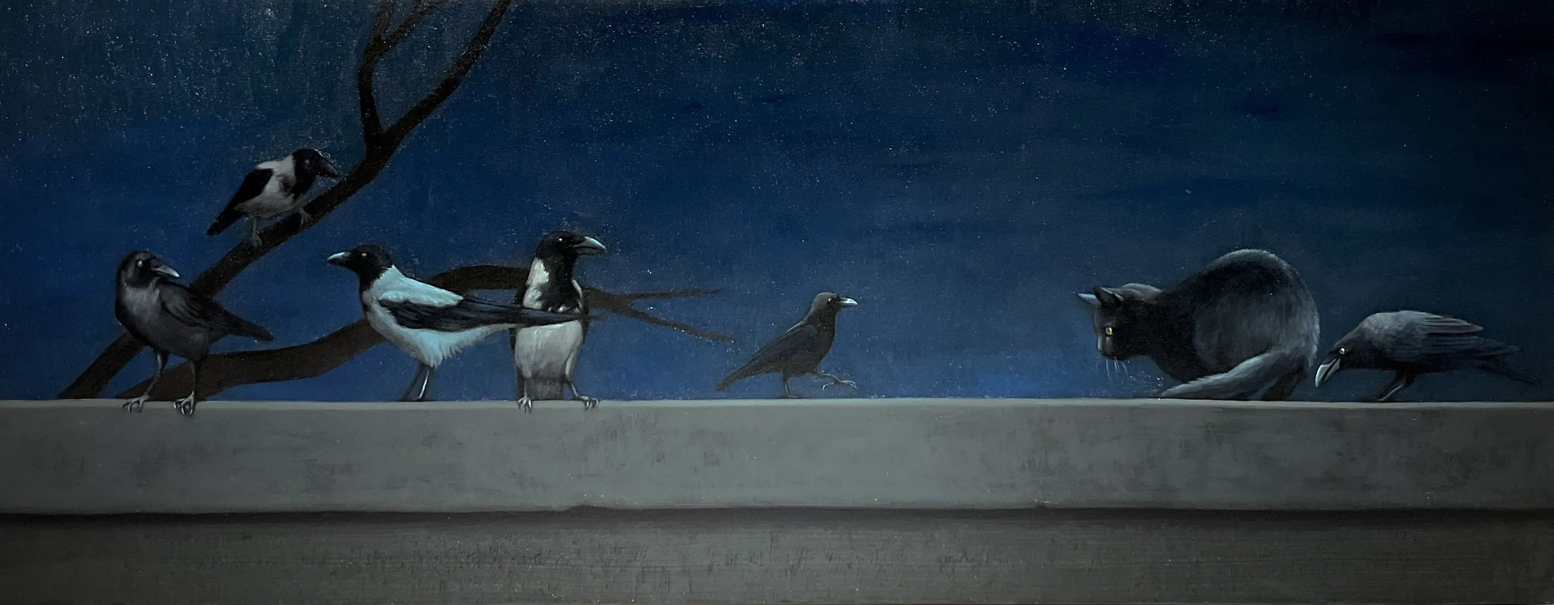 Figüratif resim temeli üzerine inşa ettiğim sanat anlayışım doğrultusunda, genellikle, yalın ve dengeli kompozisyonlar oluşturuyorum. Tüm çalışmalarım içerisinde tek bir figürden oluşan resimler önemli bir yer tutmaktadır. Tasvir ettiğim figürlerle -bir insan, hayvan ya da nesne olabilir- anlık durumlar ve ruh hallerini ifade ediyorum veya belirli bir süreci ifade eden temsil olanaklarını araştırıyorum. Anlatımın sınırlarını net bir şekilde belirginleştirmiyorum ve her izleyenle birlikte ifadenin çeşitlenmesini sağlayacak alanlar sunmak istiyorum. Sergide yer alan karga resimlerimde olduğu gibi biçimsel olarak etkileyici bulduğum elemanlar, insan figürü ya da tercih ettiğim hayvan ve nesneler ile zihnimdeki imgeleri etkili biçimlere dönüştürerek yansıtmayı amaçlıyorum. Son çalışmalarımda hayatımın farklı dönemlerinde aklıma kazınmış popüler veya underground kültür imgelerini kompozisyonlarıma dahil ederek illüstratif öğeler ile resimsel form arasındaki dengeyi sorguluyorum.